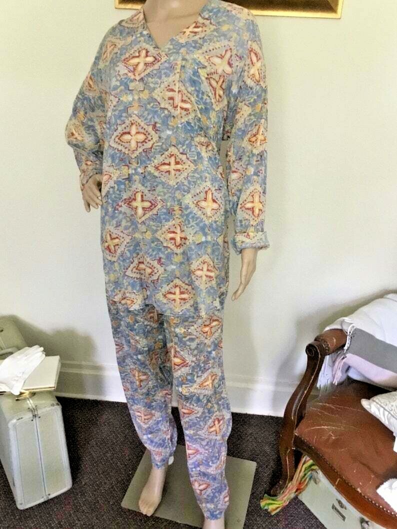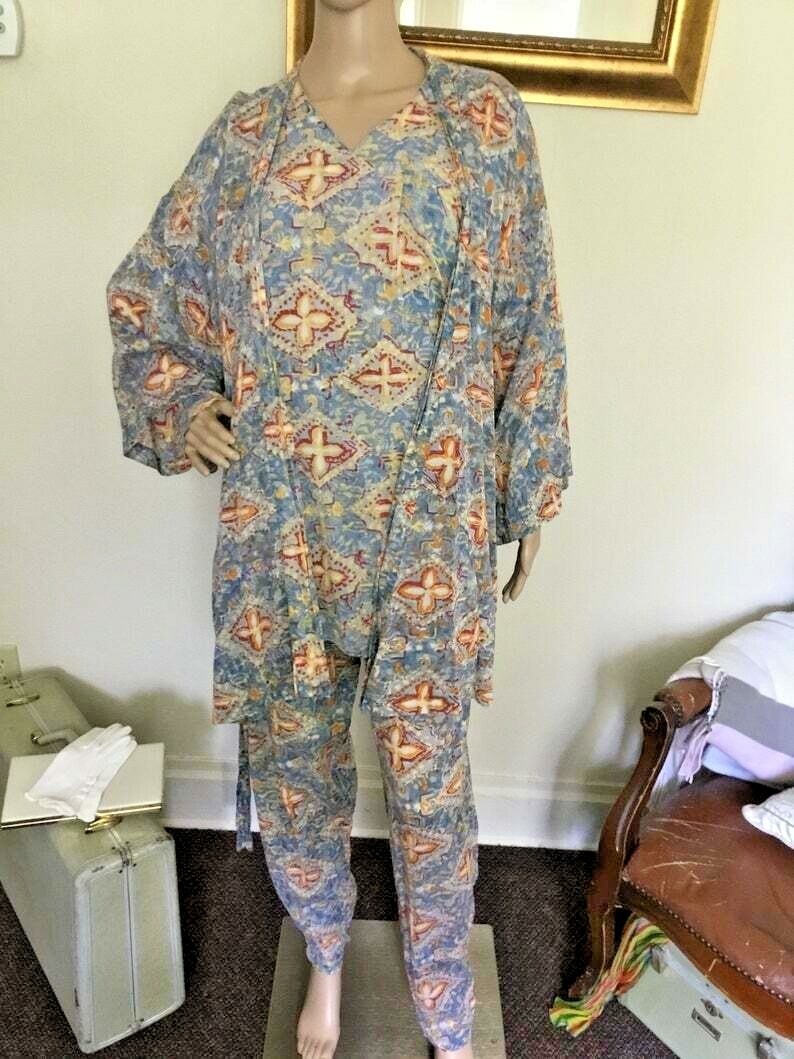 как выглядит 80 s Vintage Blue Beach Vacation Cover-up Pants 3pc Set фото