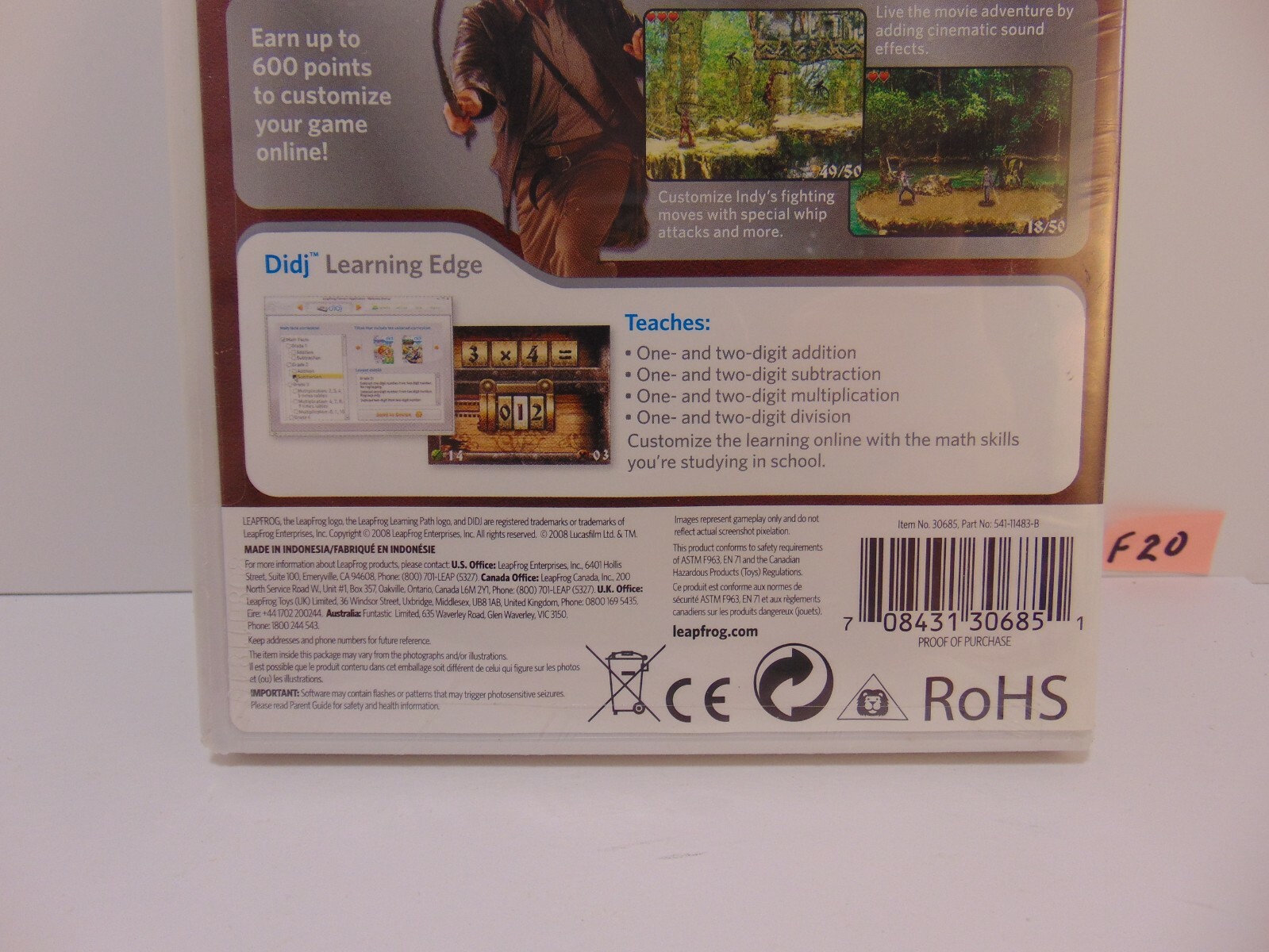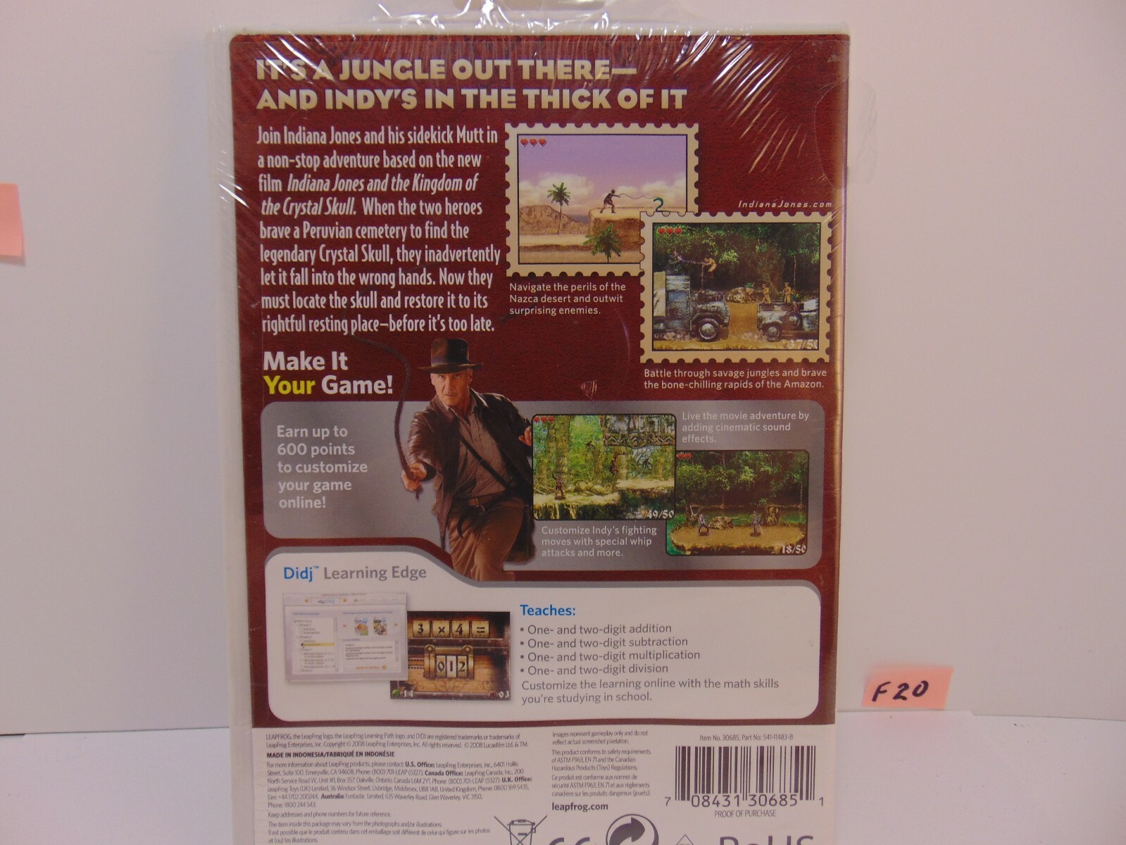 Leap Frog Didj Indiana Jones Math Facts Grade 2-4 Age 7-10 Learning Path Game