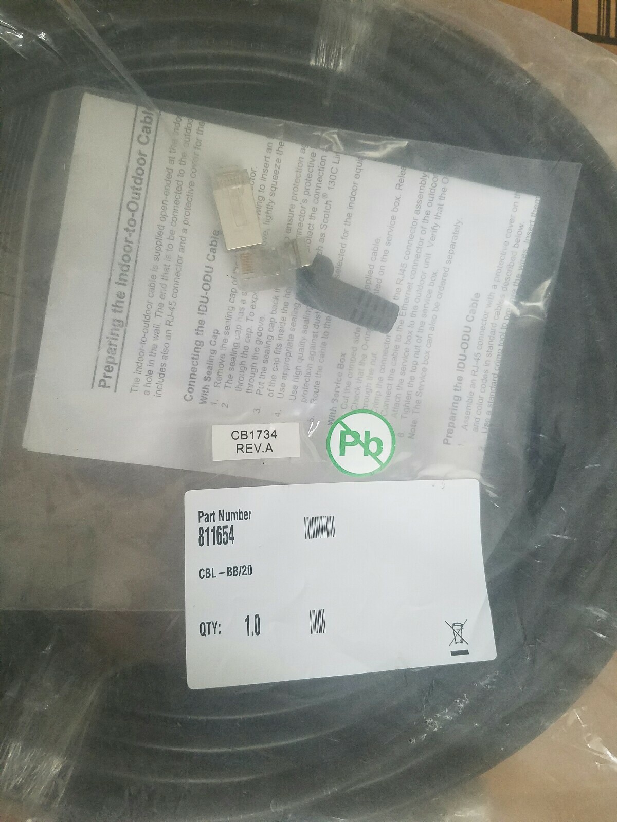 как выглядит Telrad CBL-BB/20 unit baseband indoor to outdoor cable RJ-45 Part 811654 фото