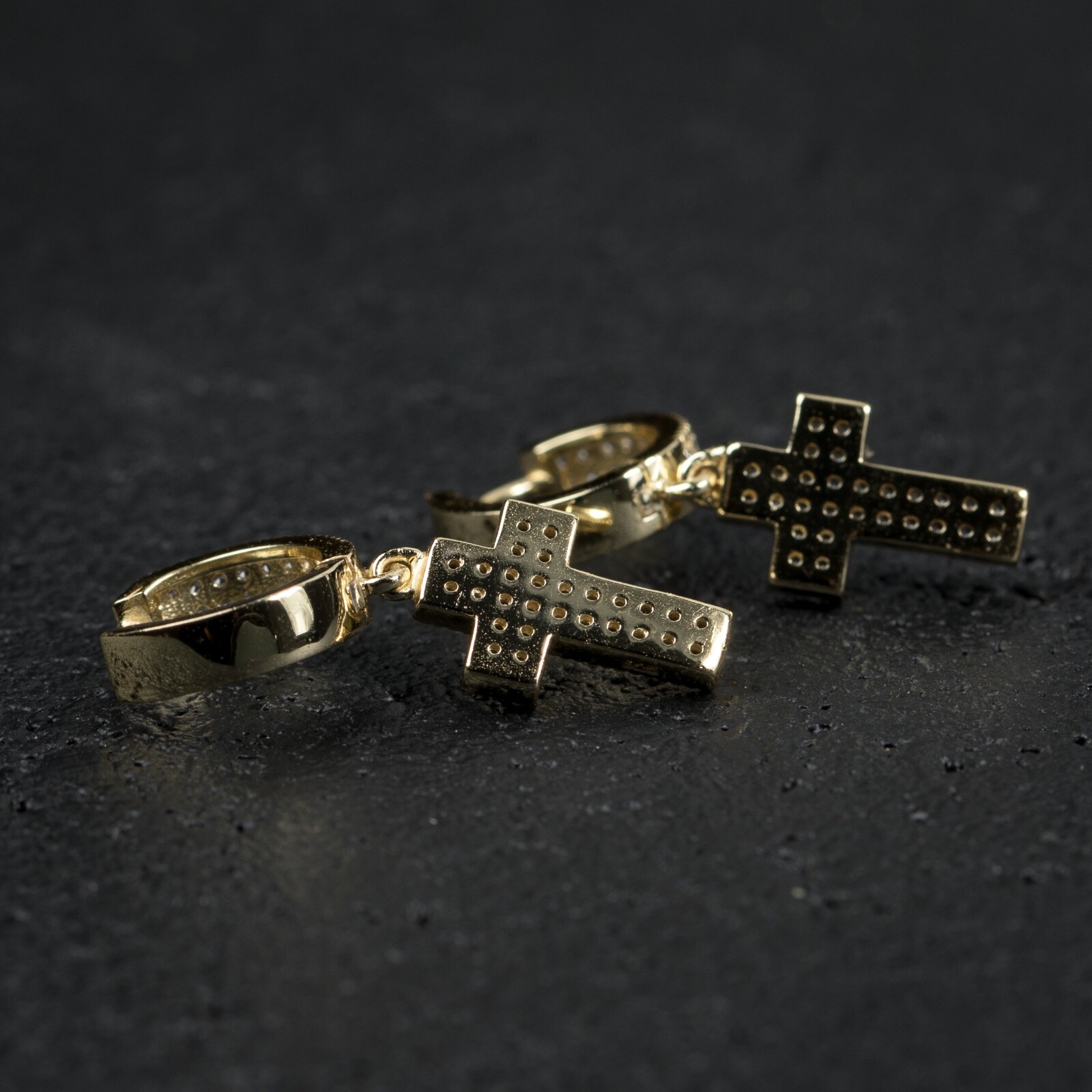 как выглядит Iced Mens Cz Cross Drop Dangle Sterling Silver Hoop Earrings фото