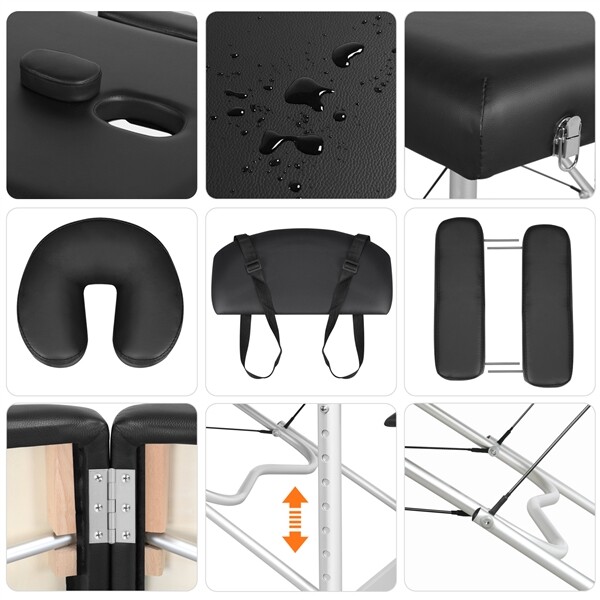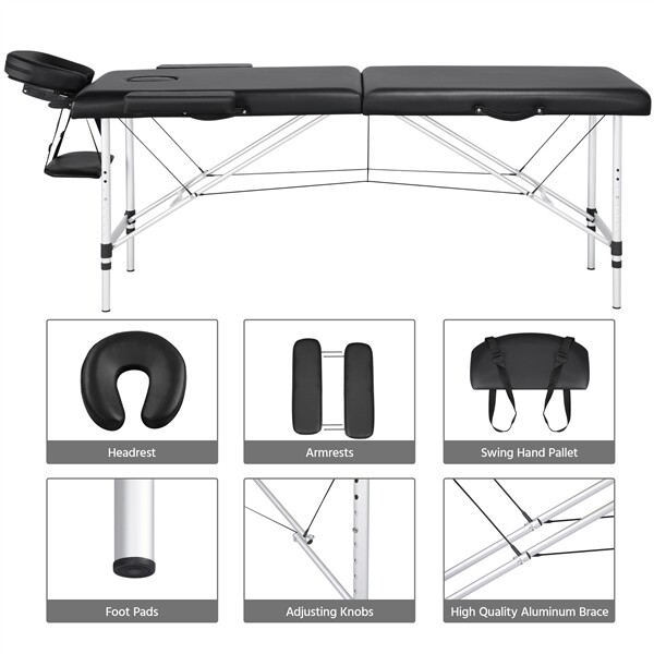 Aluminum Massage Table 2 Folding Salon Lash Bed Portable Spa Table Couch Black