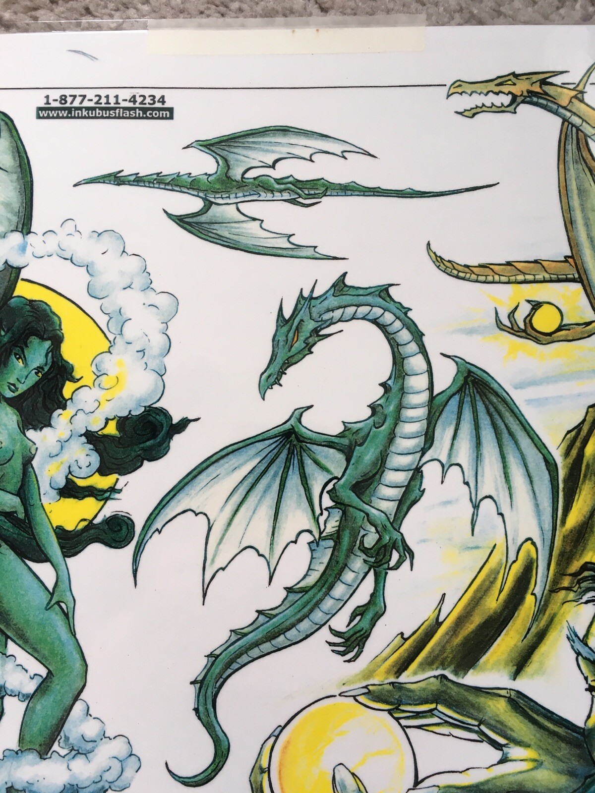 как выглядит Tattoo Flash Single Sheet Print Dragons Fairies Medieval Wizard 11 X 14 фото