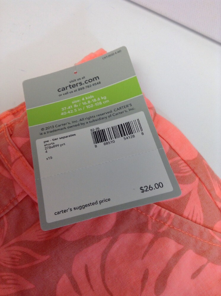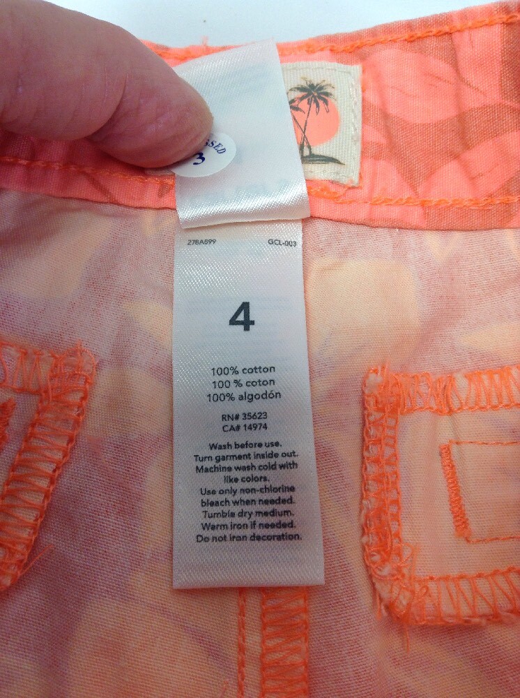 Carters Girls Shorts Orange with Flowers 100 Cotton Size 4 Retails 26.00 2