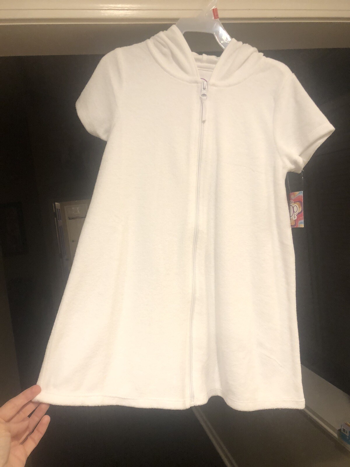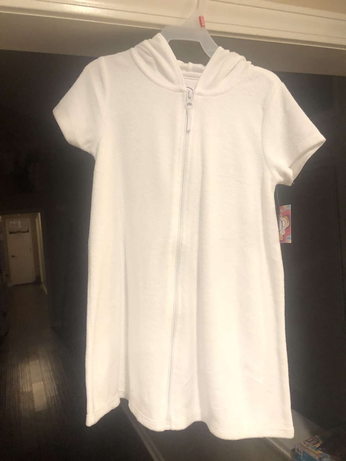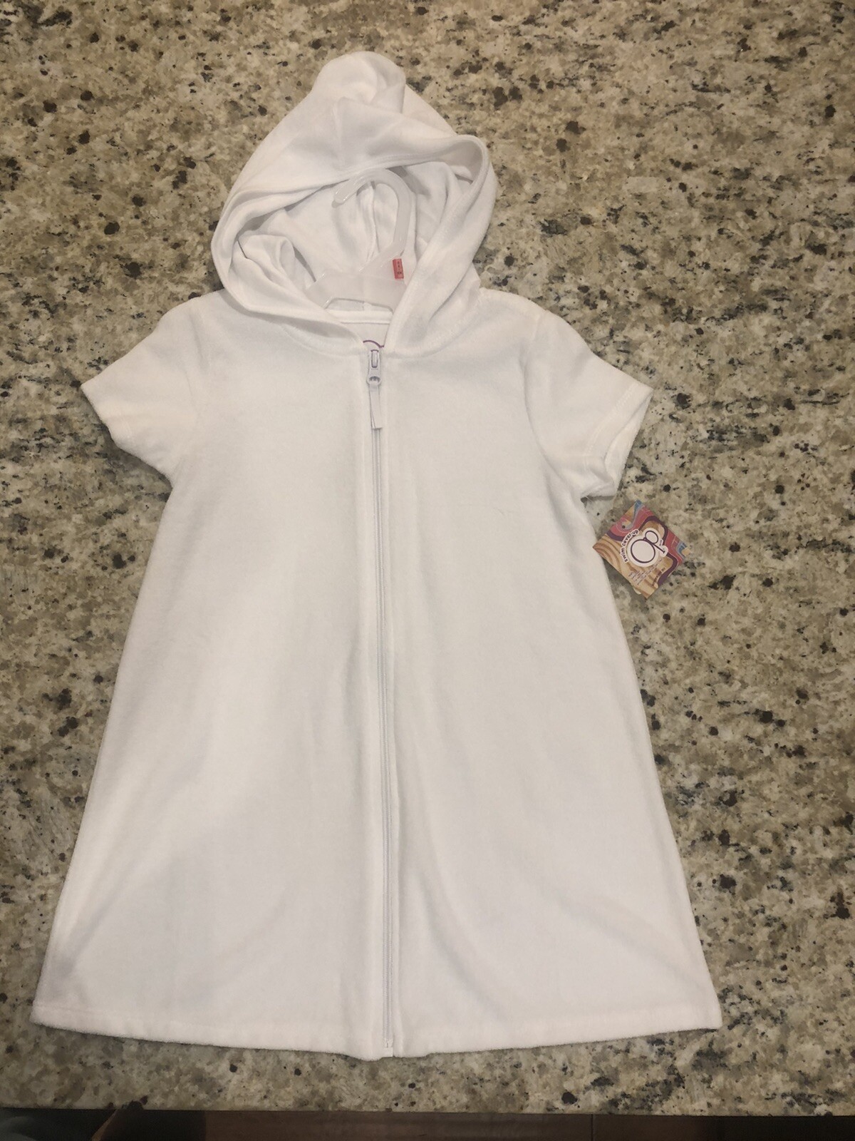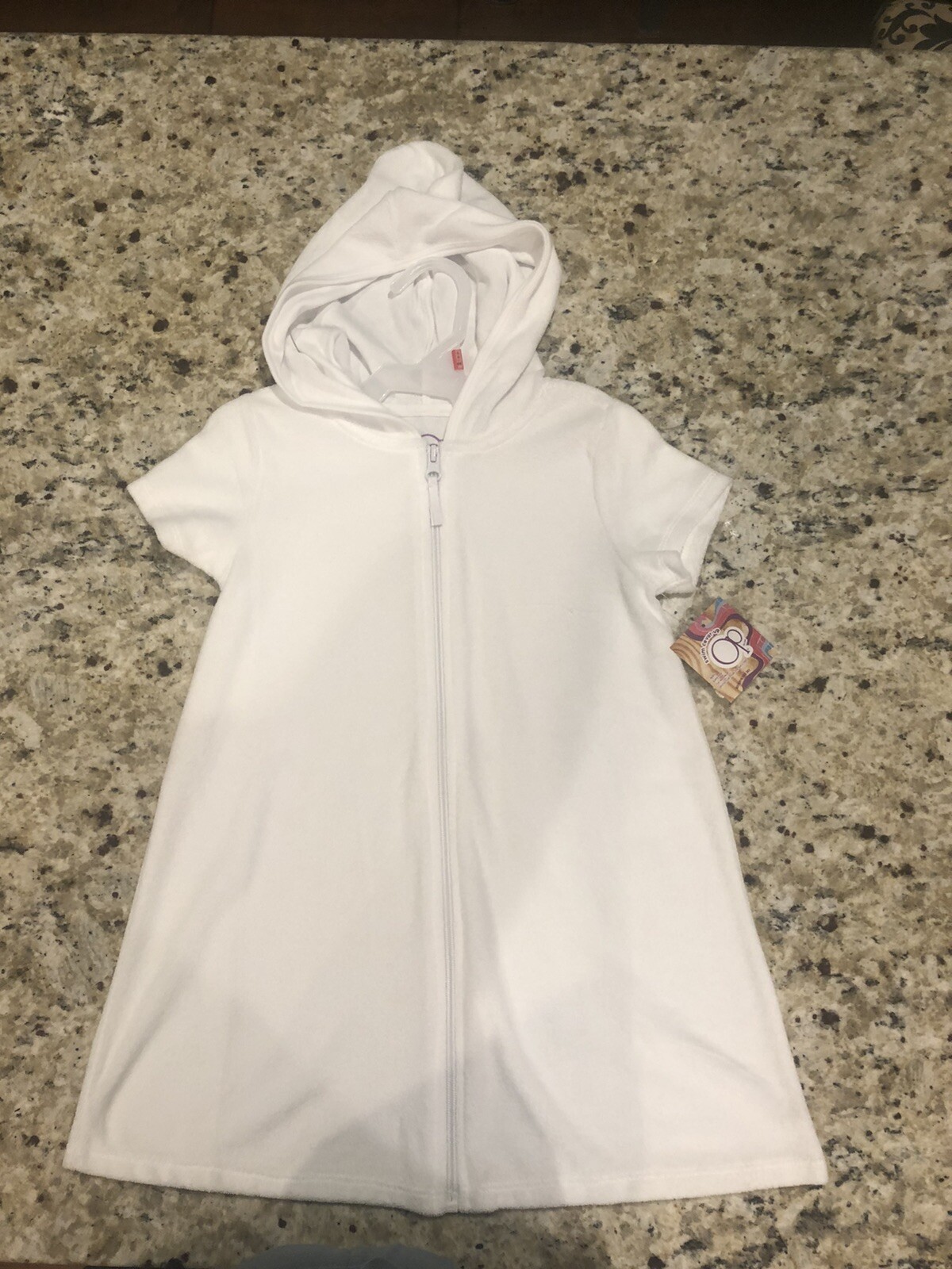 как выглядит Girls Swim Coverup Beach White OP Hooded Terry Coverup NEW NWT Size 4/5 X-small фото