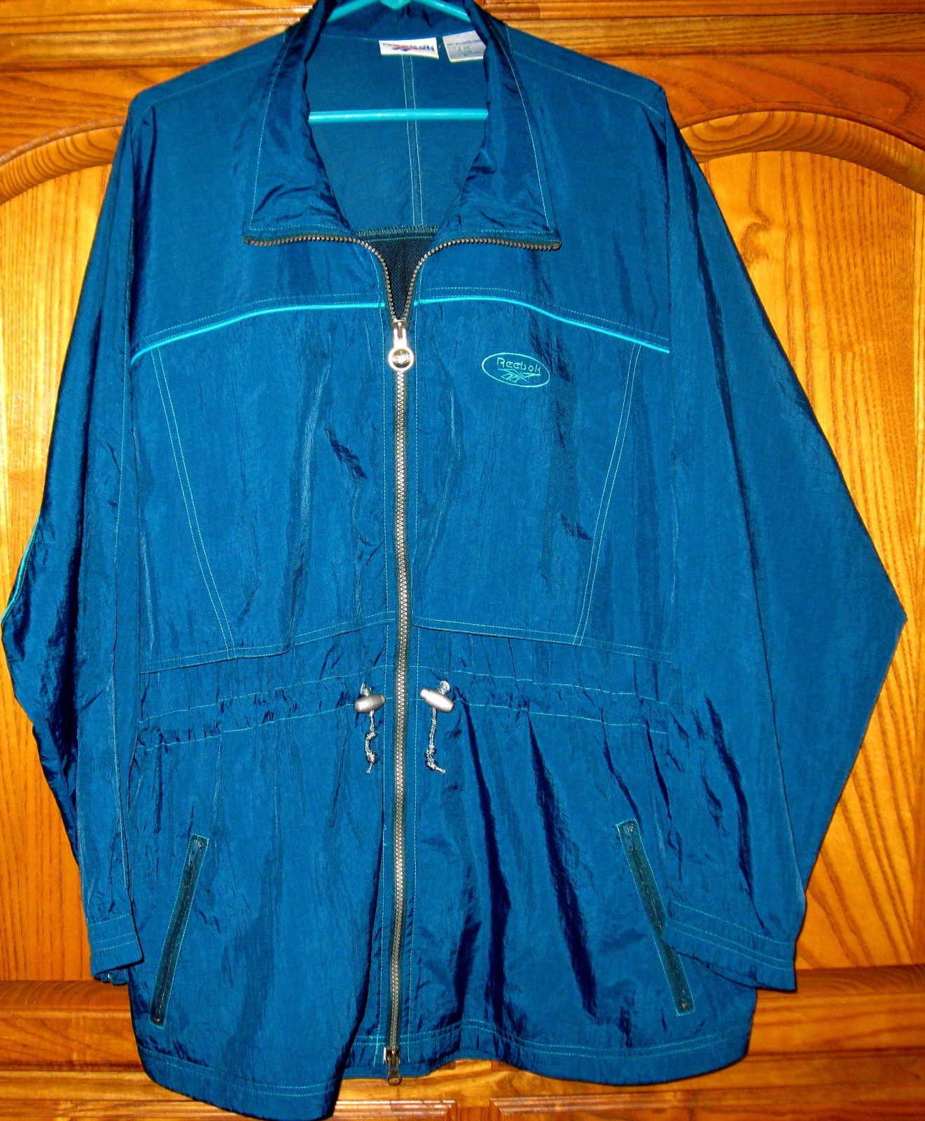 как выглядит WMS VTG REEBOK SZ XL TEAL BLUE WINDBREAKER JACKET W DRAWSTRING WAIST/ZIP POCKETS фото