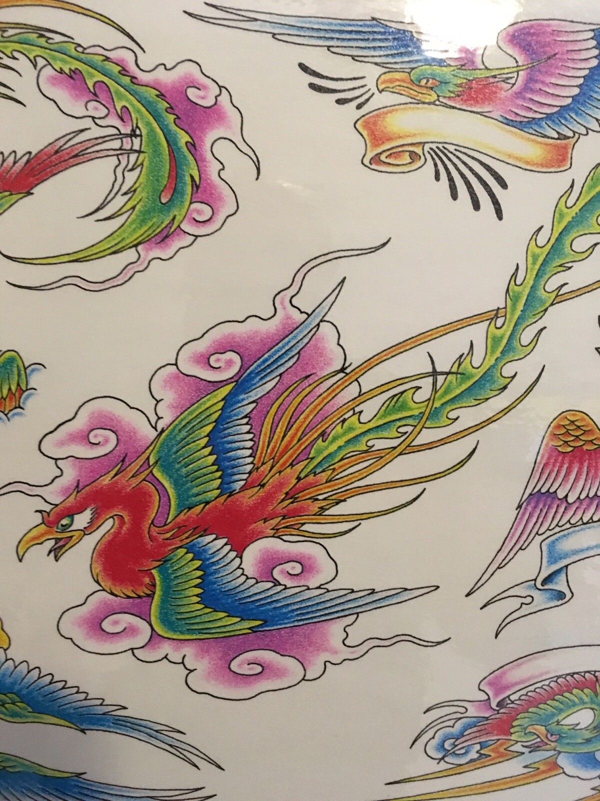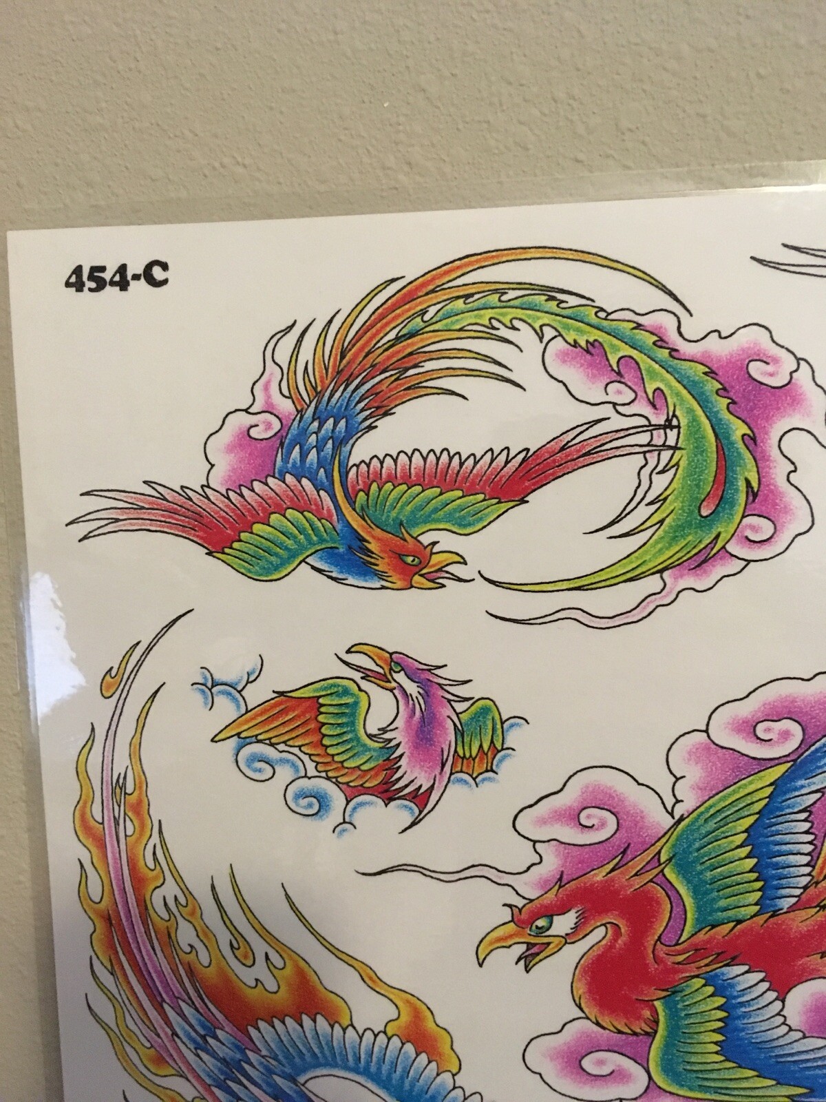 Tattoo Flash Single Sheet Print Official Tattoo Phoenix Birds Pheasant 11 X 14