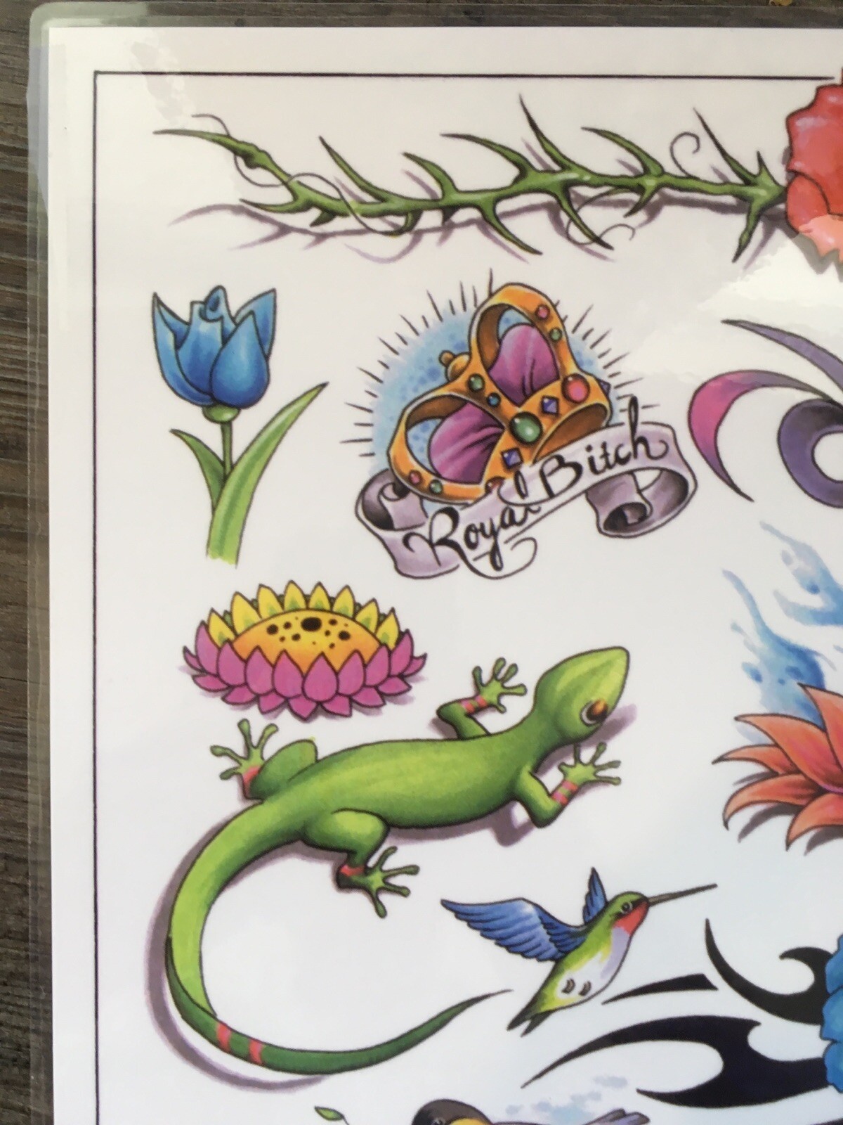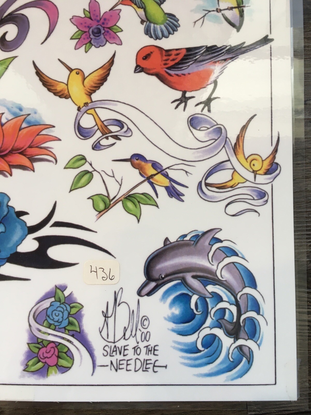как выглядит Tattoo Studio Shop Flash Single For Women Girls Flowers Birds 11 X 14" Print фото