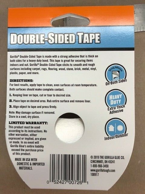 как выглядит DOUBLE-SIDED DUCT TAPE 1.41" X 8yd. HEAVY DUTY INDOOR/OUTDOOR GORILLA 00726 фото