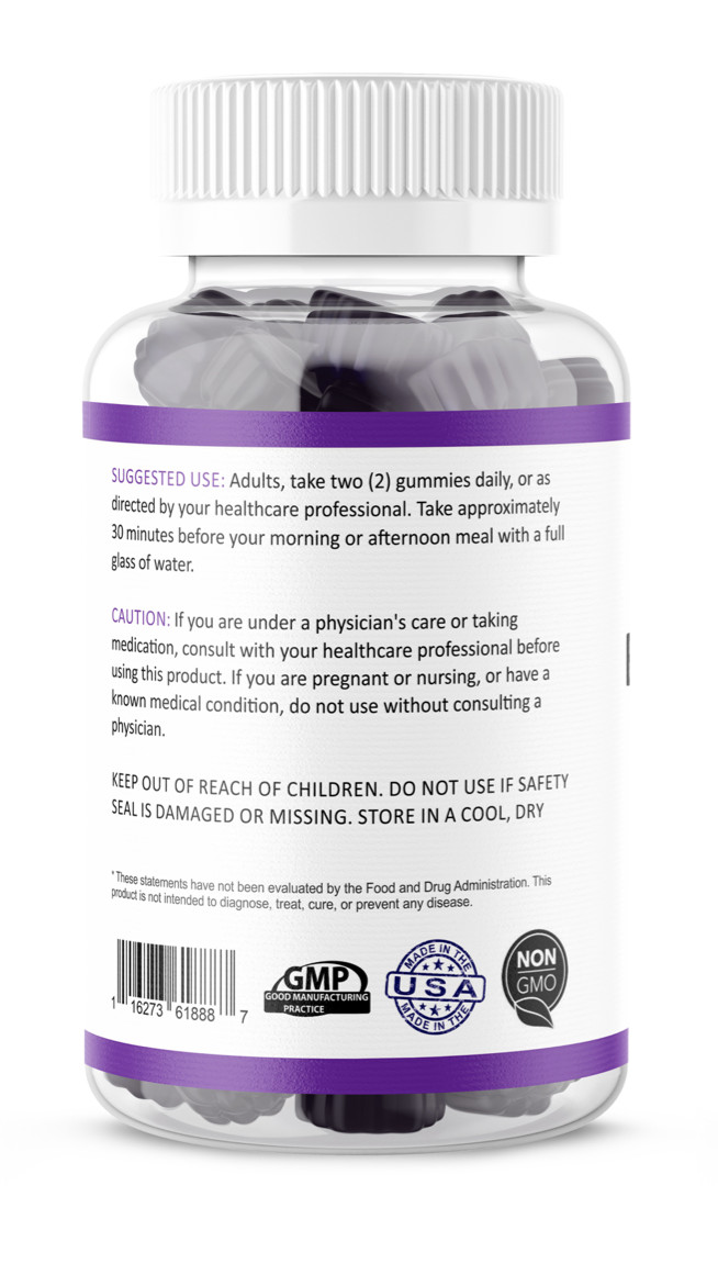 Black Elderberry Gummies Vitamin C Zinc 260mg Natural Berry Flavor Immune Boost