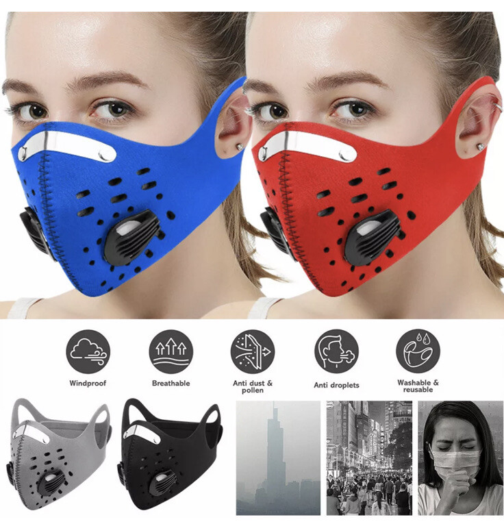 2x USA Face Mask 2x Carbon Filter-Reusable Neoprene Air Ventilation Port