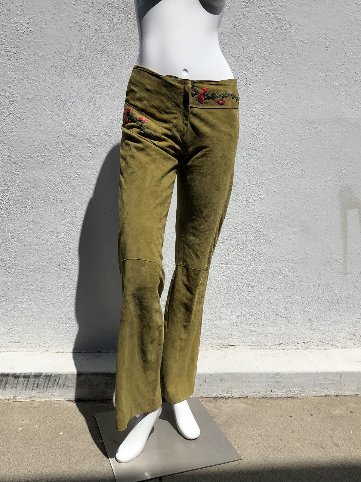как выглядит Vintage Fendi Embroidered wide Bottoms Suede Leather hippie Pants size 40 used фото