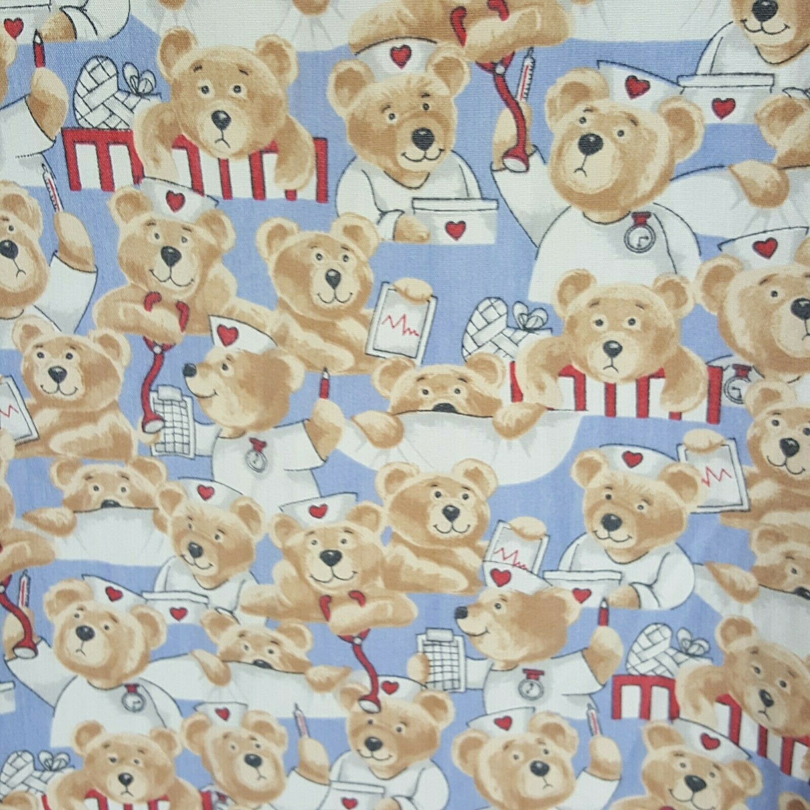 GALS Womens Small Scrub Top Blue Bears Nurses Doctors Medical Vet