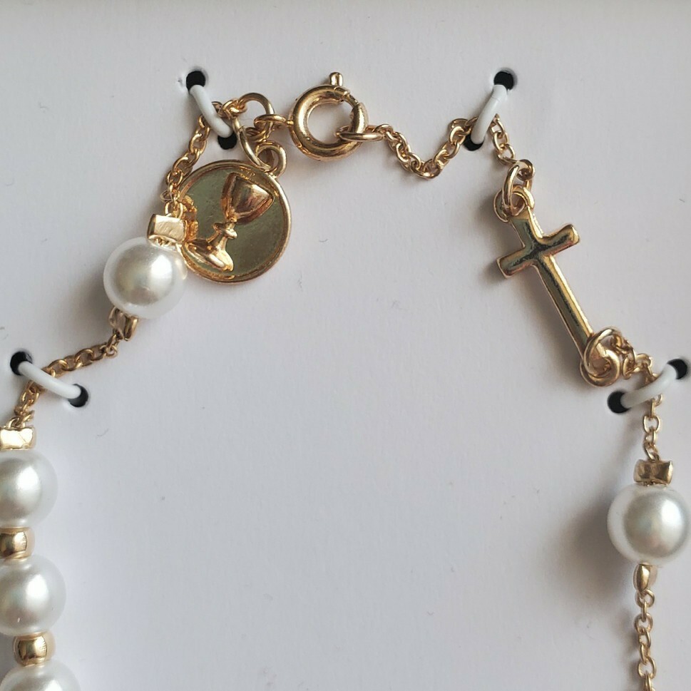 как выглядит HALLMARK First Communion Childs Gold and Pearl Rosary Religious Bracelet фото