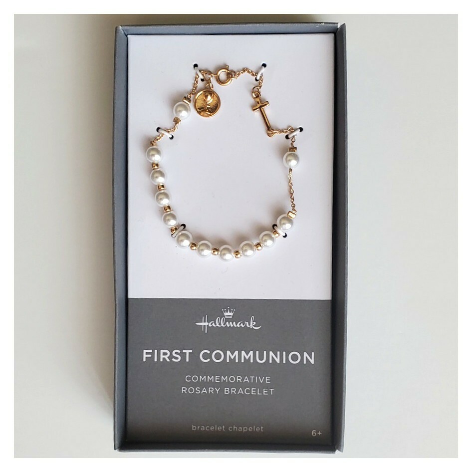 HALLMARK First Communion Childs Gold and Pearl Rosary Religious Bracelet