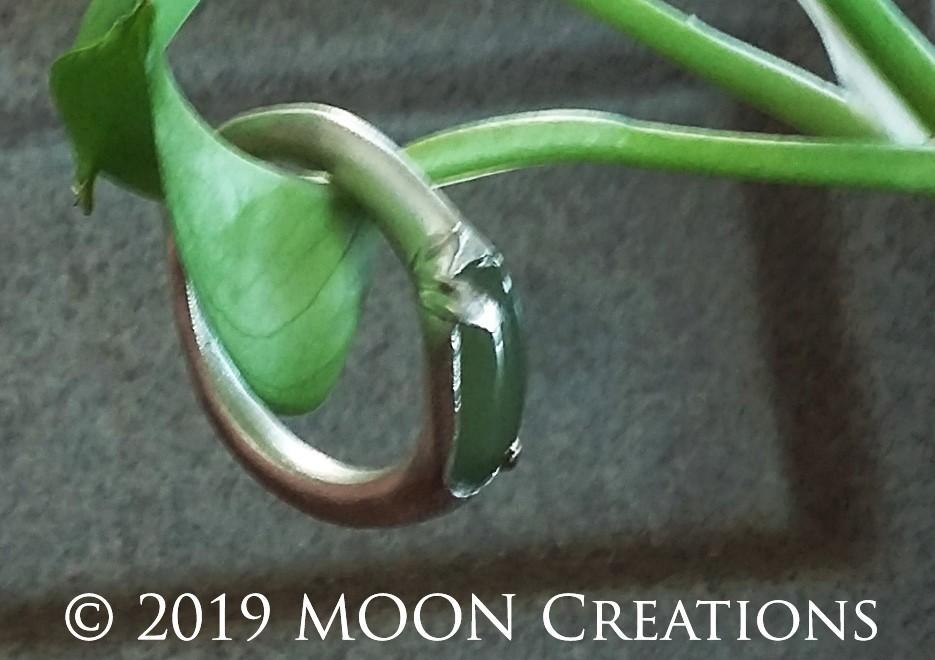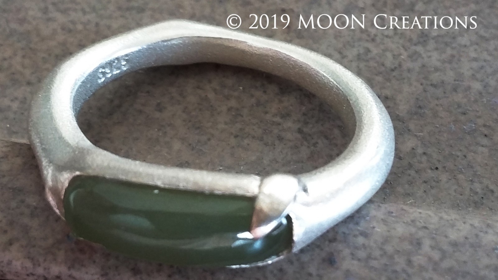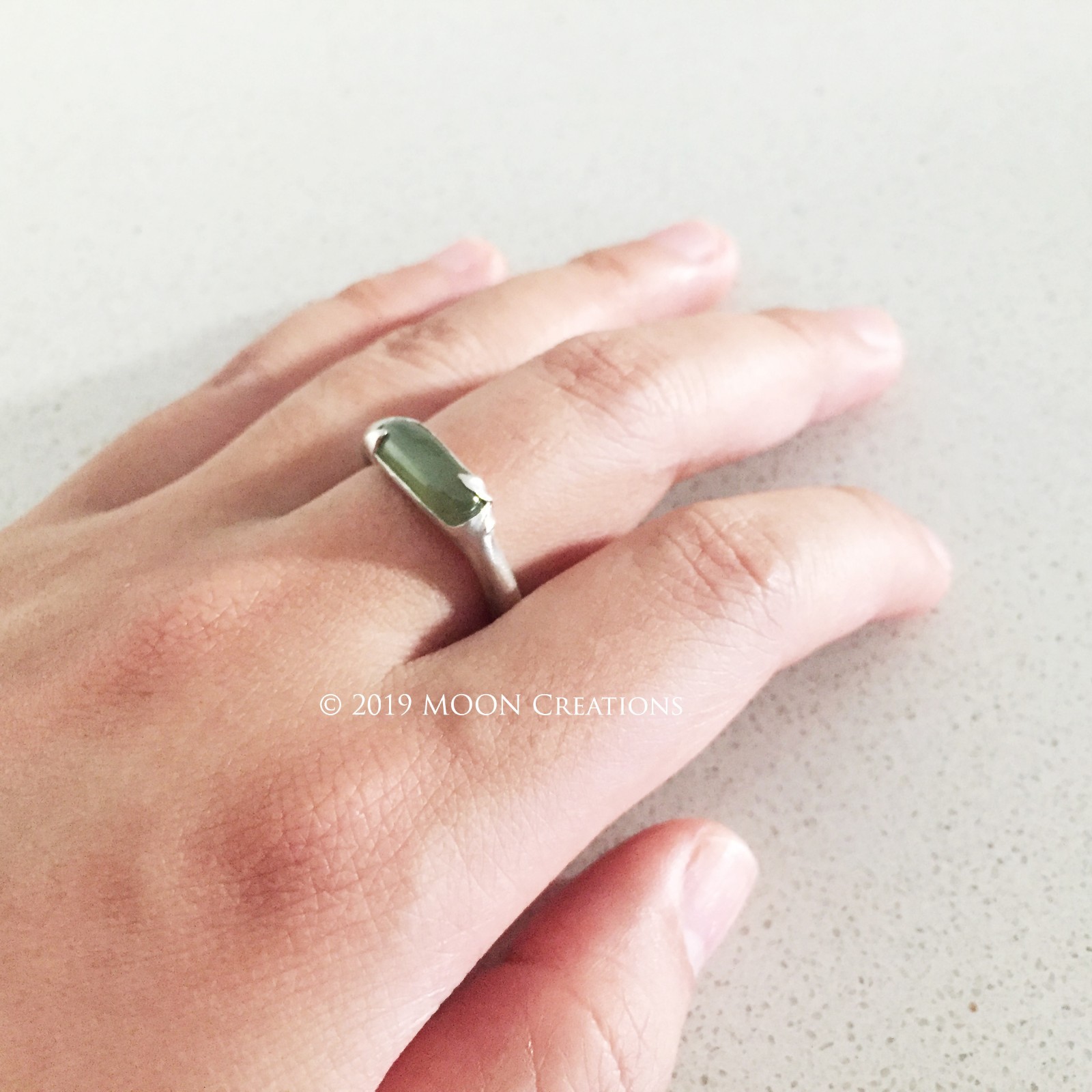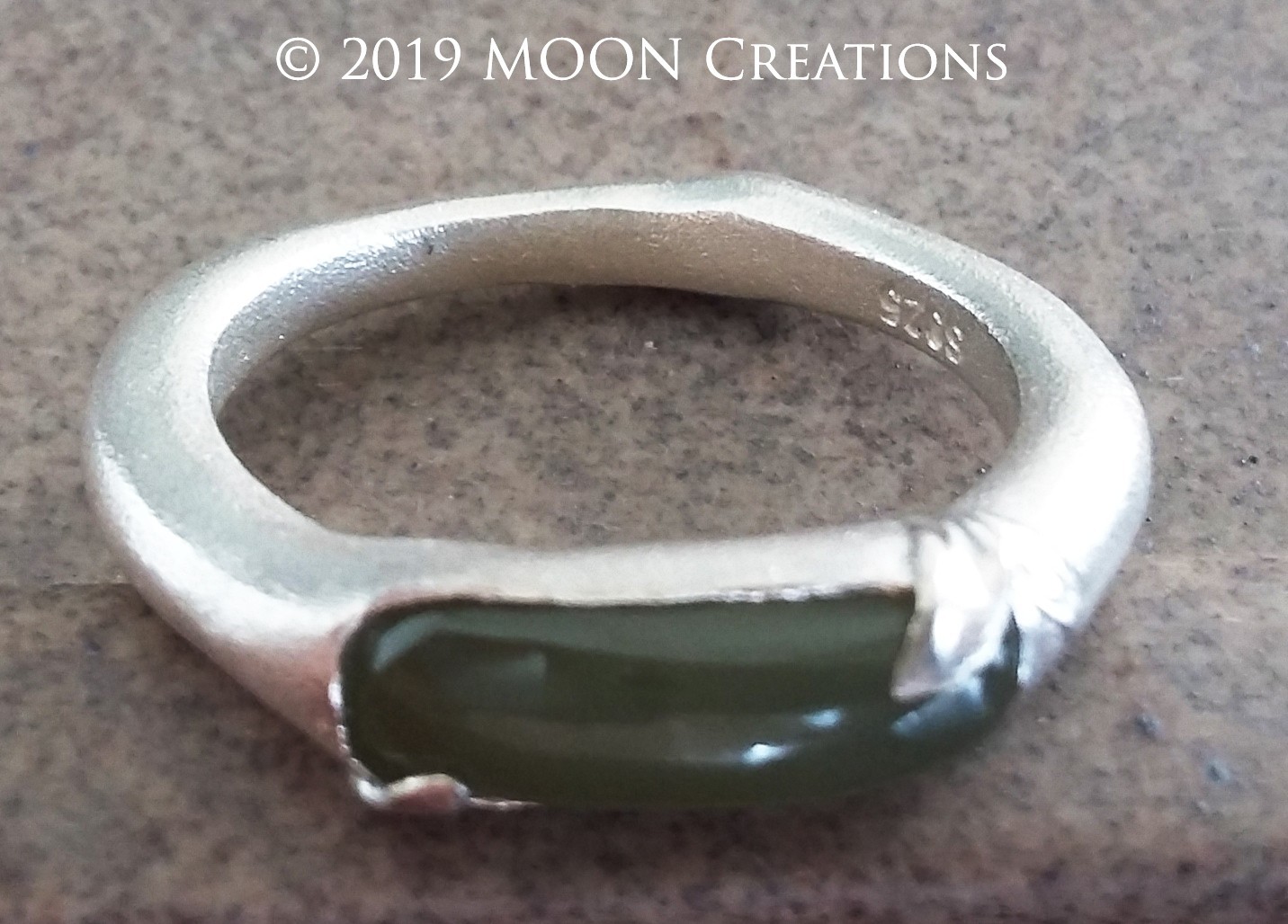 NEW Handmade Bamboo-inspired Natural Nephrite Jade Solid Silver Ring, Size 7.5
