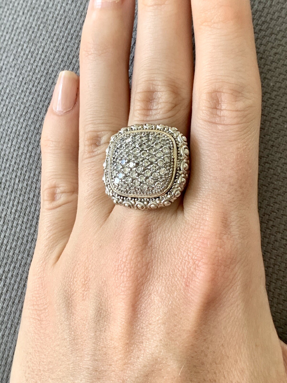 как выглядит 925 Sterling Silver Cz Cluester Statement Ring Sz 6.5 фото