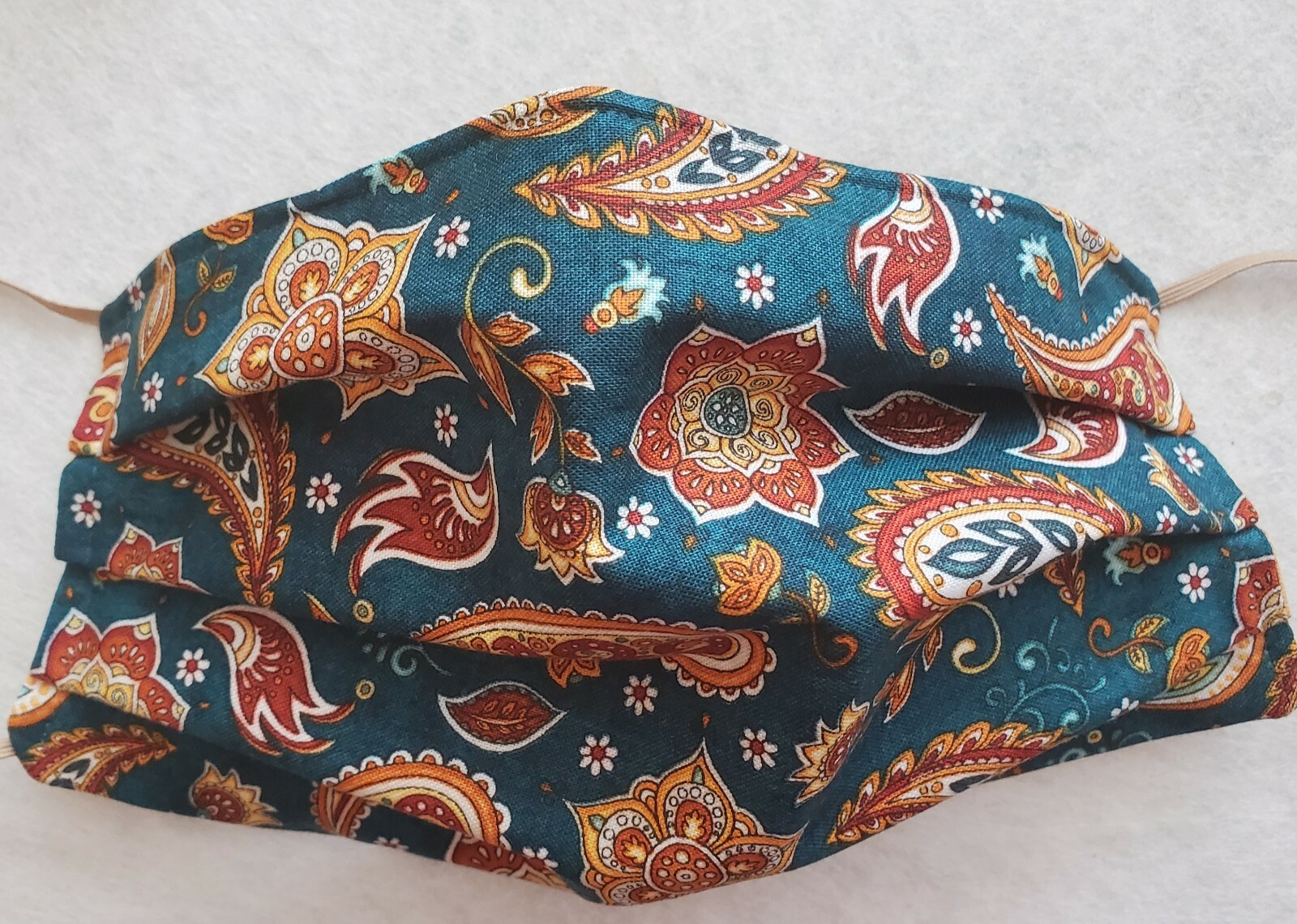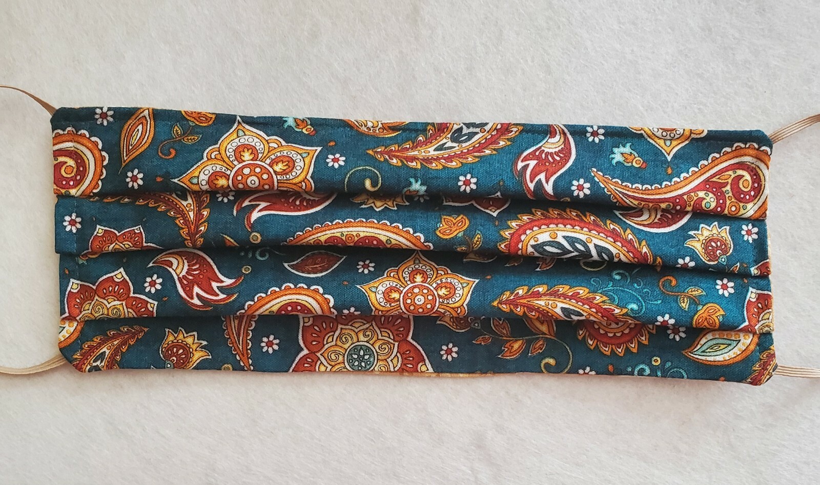 Paisley Floral Face Mask Nose Wire, Filter Opening, Reversible 2 in 1, 1/8 in el