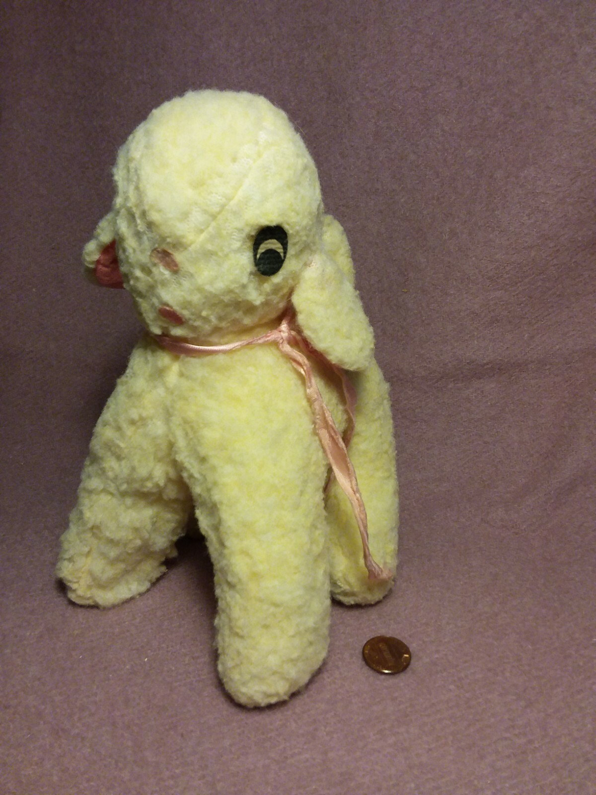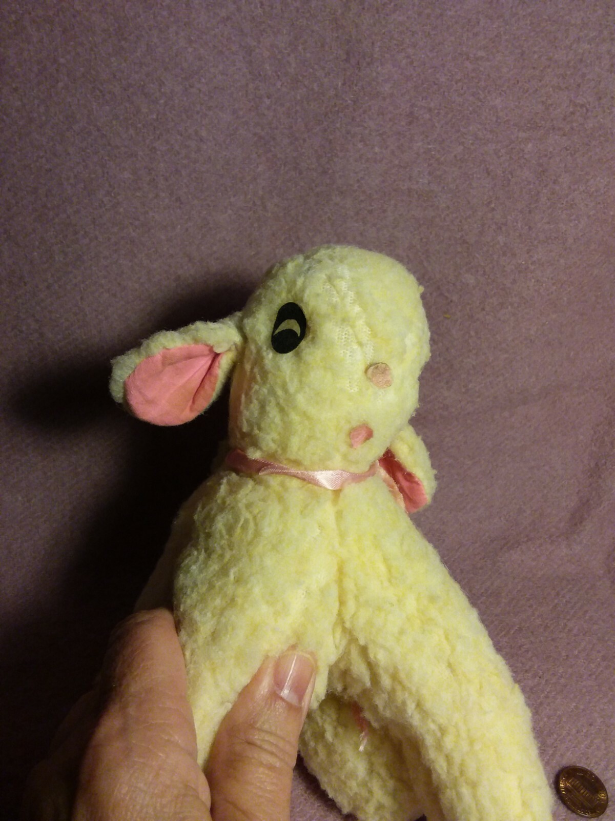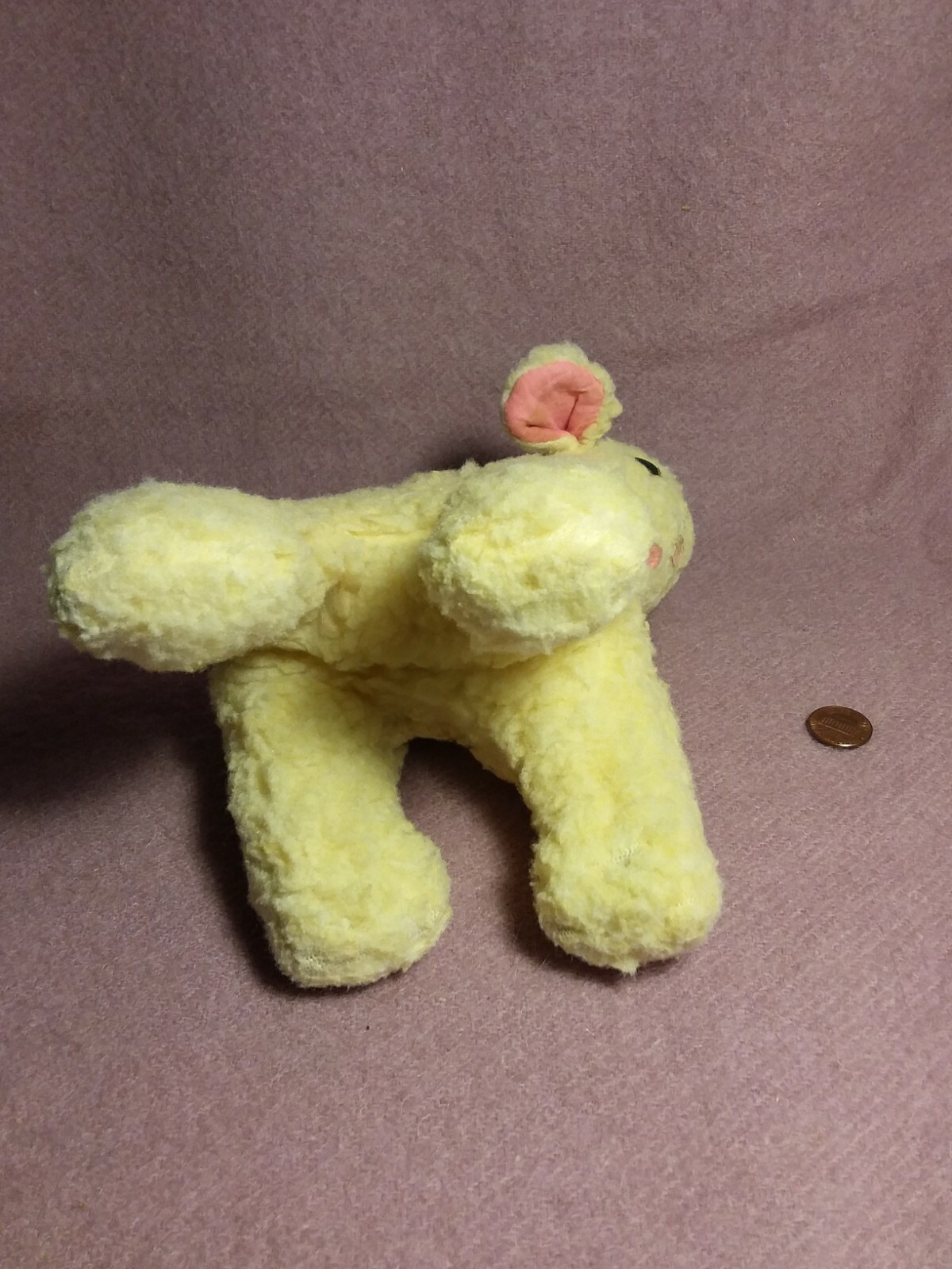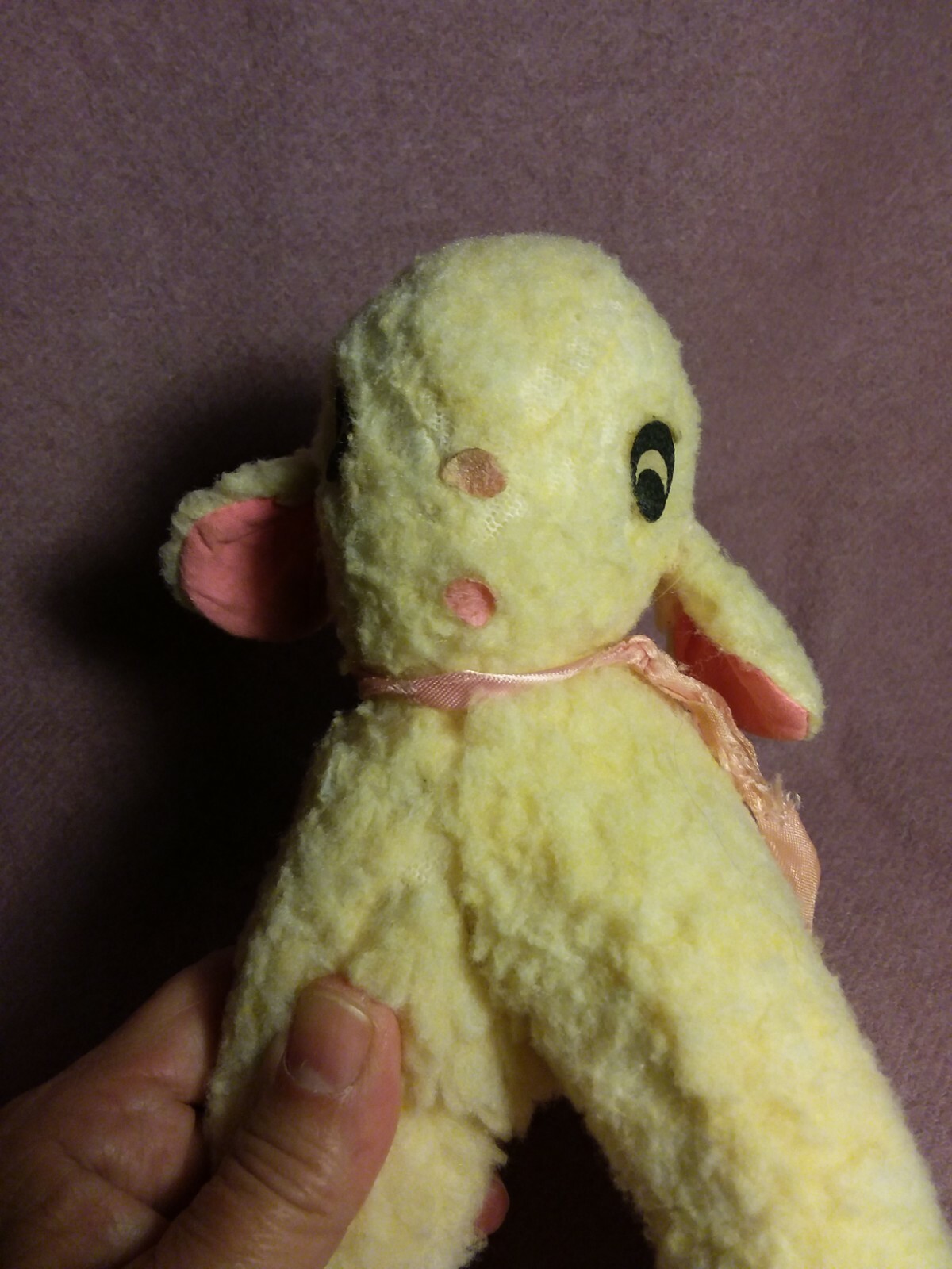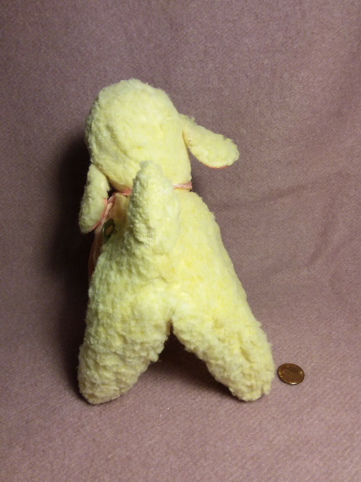 Vintage 6 by 8 CREAM NUBBY wind up MUSICAL LAMB SHEEP ROCK A BYE plush stuffed