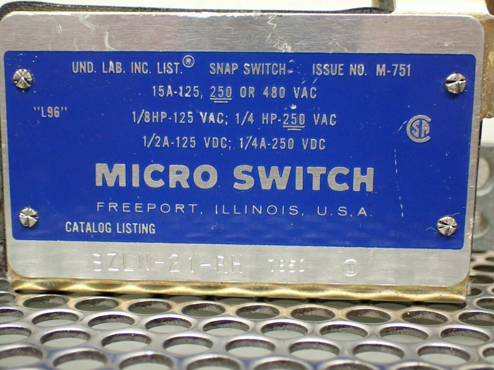 Micro Switch BZLN-21-RH Snap Switches 15A 125, 250 or 480VAC New Lot of 2