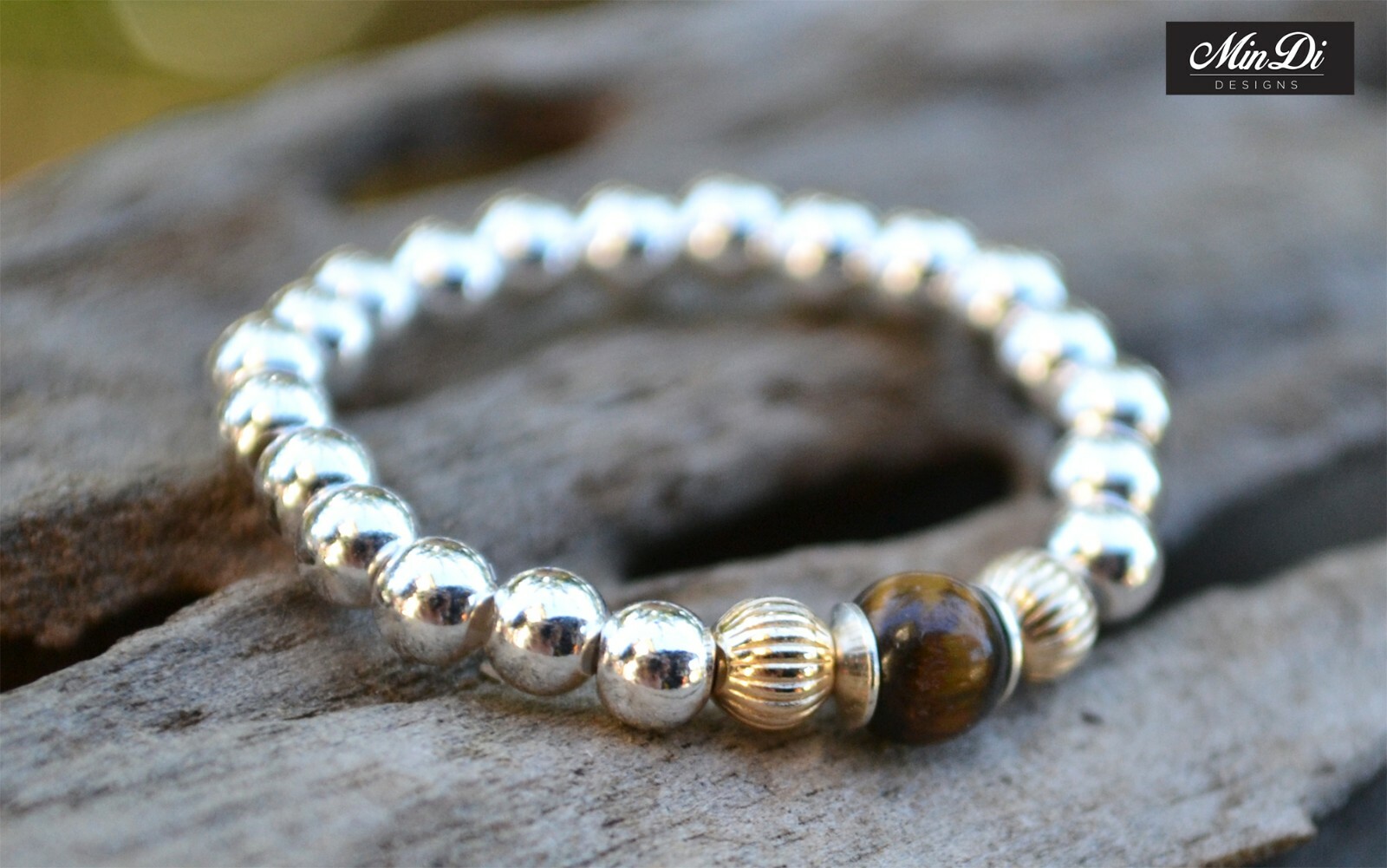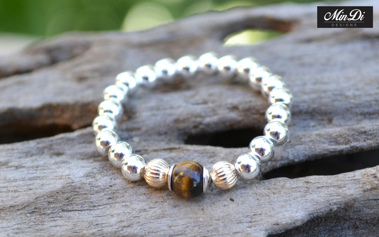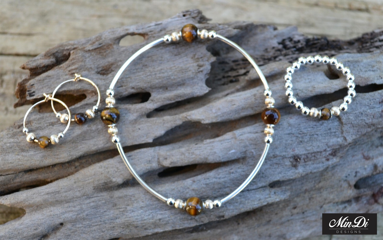 14K Gold Filled, Tigers Eye Sterling Silver Stretch Ring.