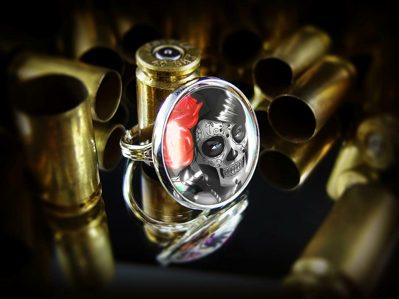 как выглядит Flower Girl Sugar Skull Handmade Day of the Dead Silver Ring фото