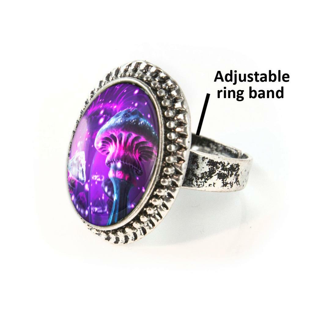 Magic Mushroom Psychedelic Fantasy Handmade Glass Ring