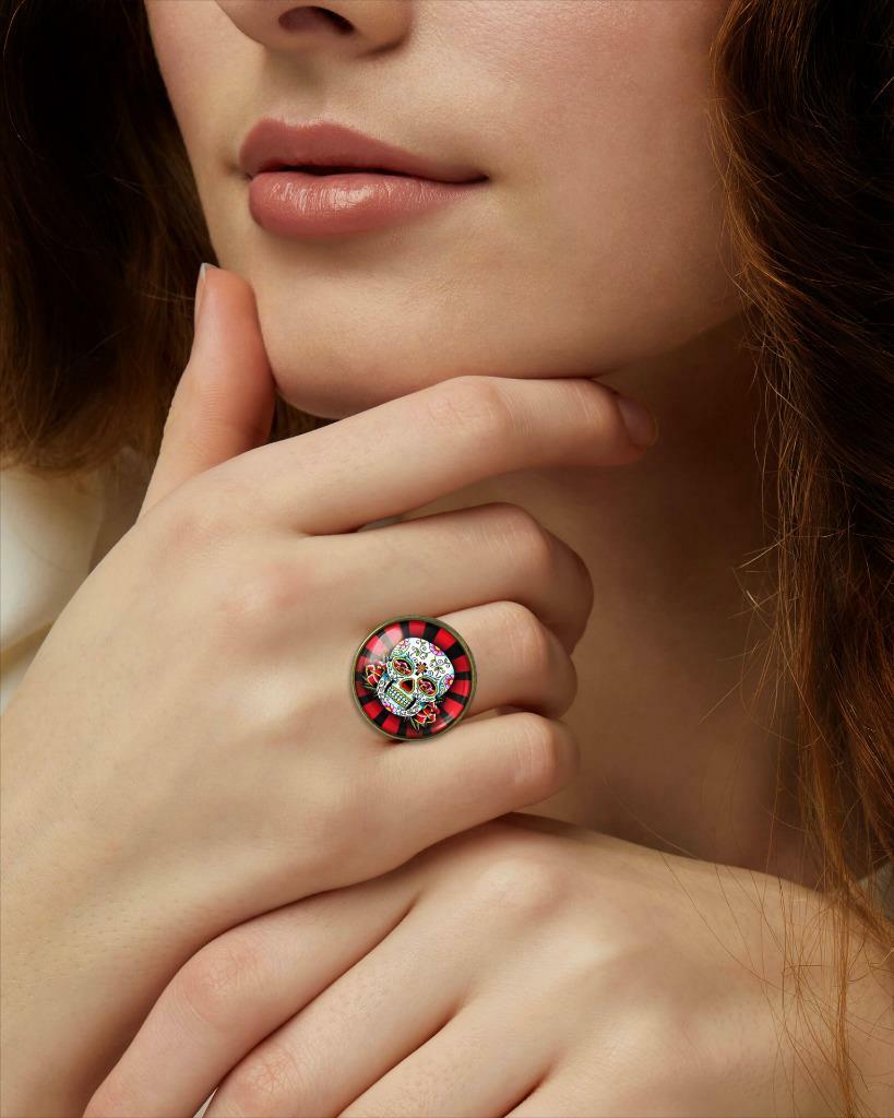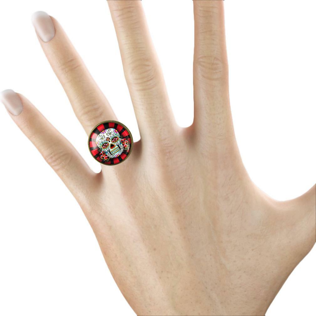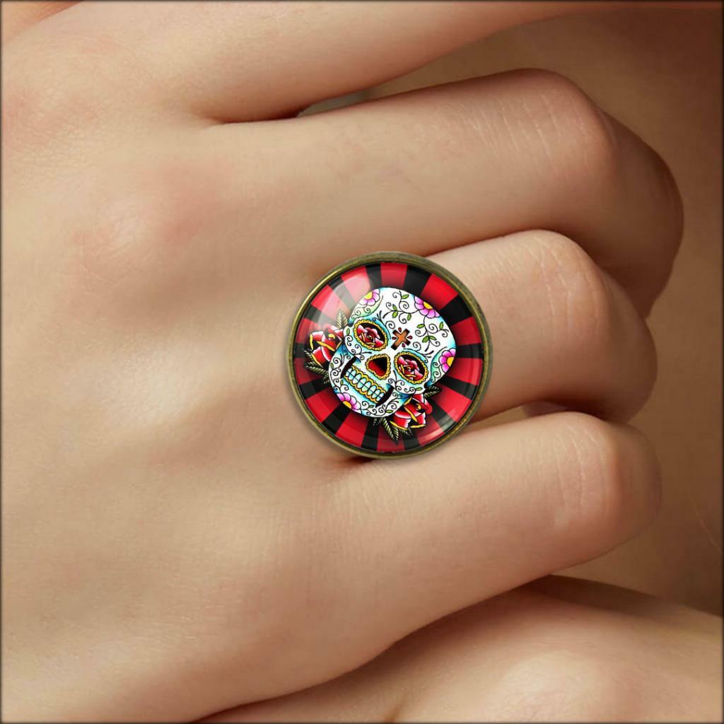Day of the Dead Mexican Sugar Skull Handmade Glass Ring
