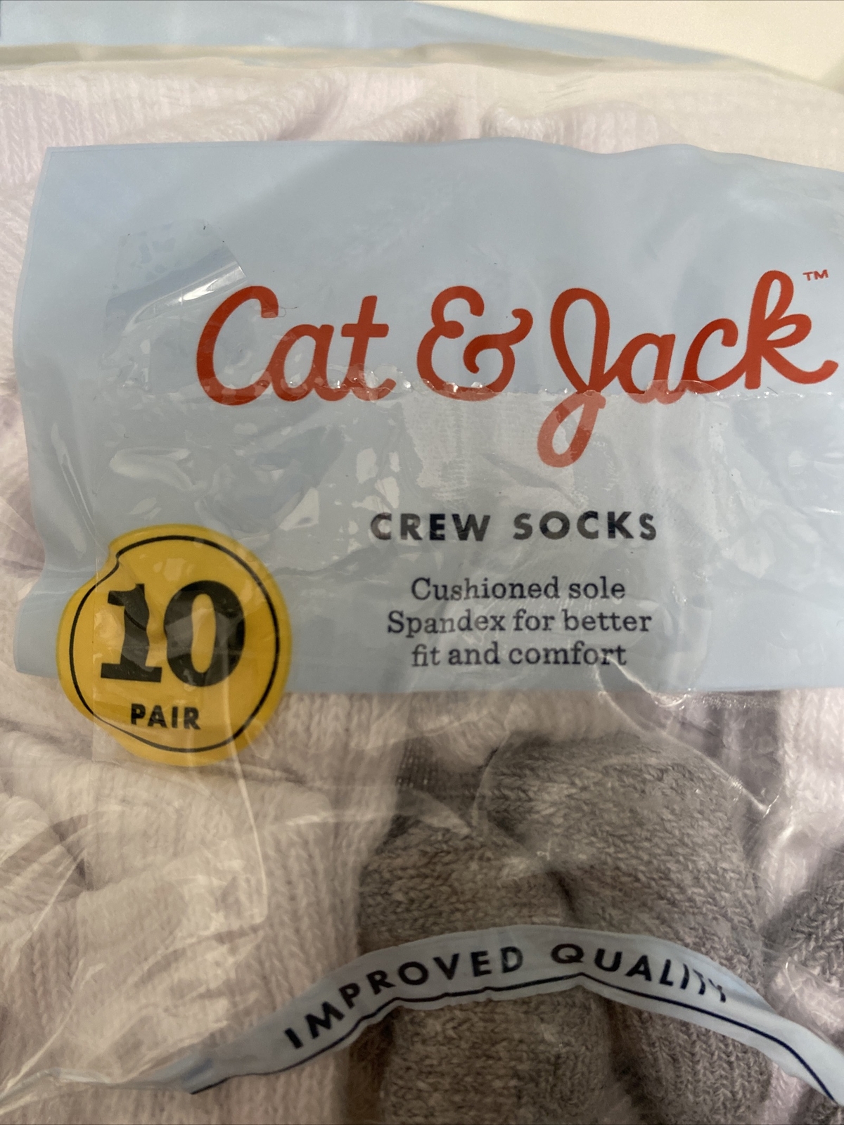 Cat Jack Children's crew socks, White, small 5-1/2 to 8-1/2 . NIOB.