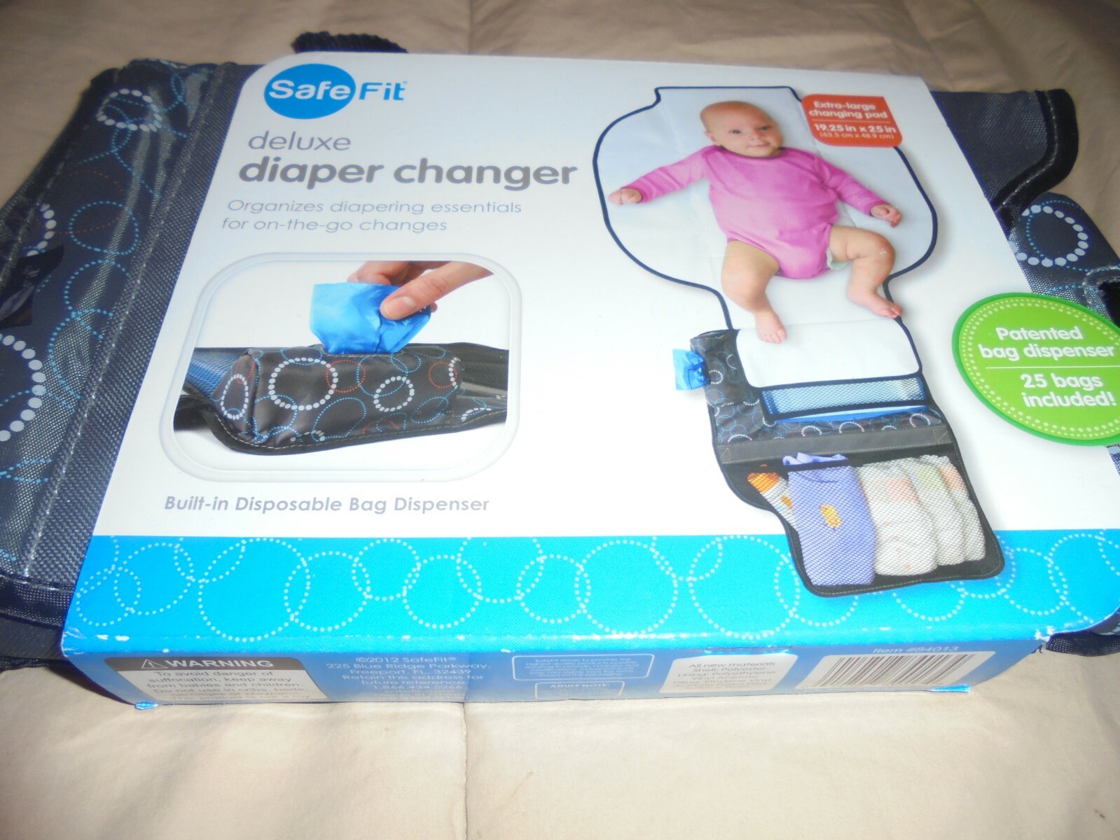 как выглядит Safe Fit Deluxe Diaper Changer Built-in Disposable Bag Dispenser Gray/Teal 60 фото