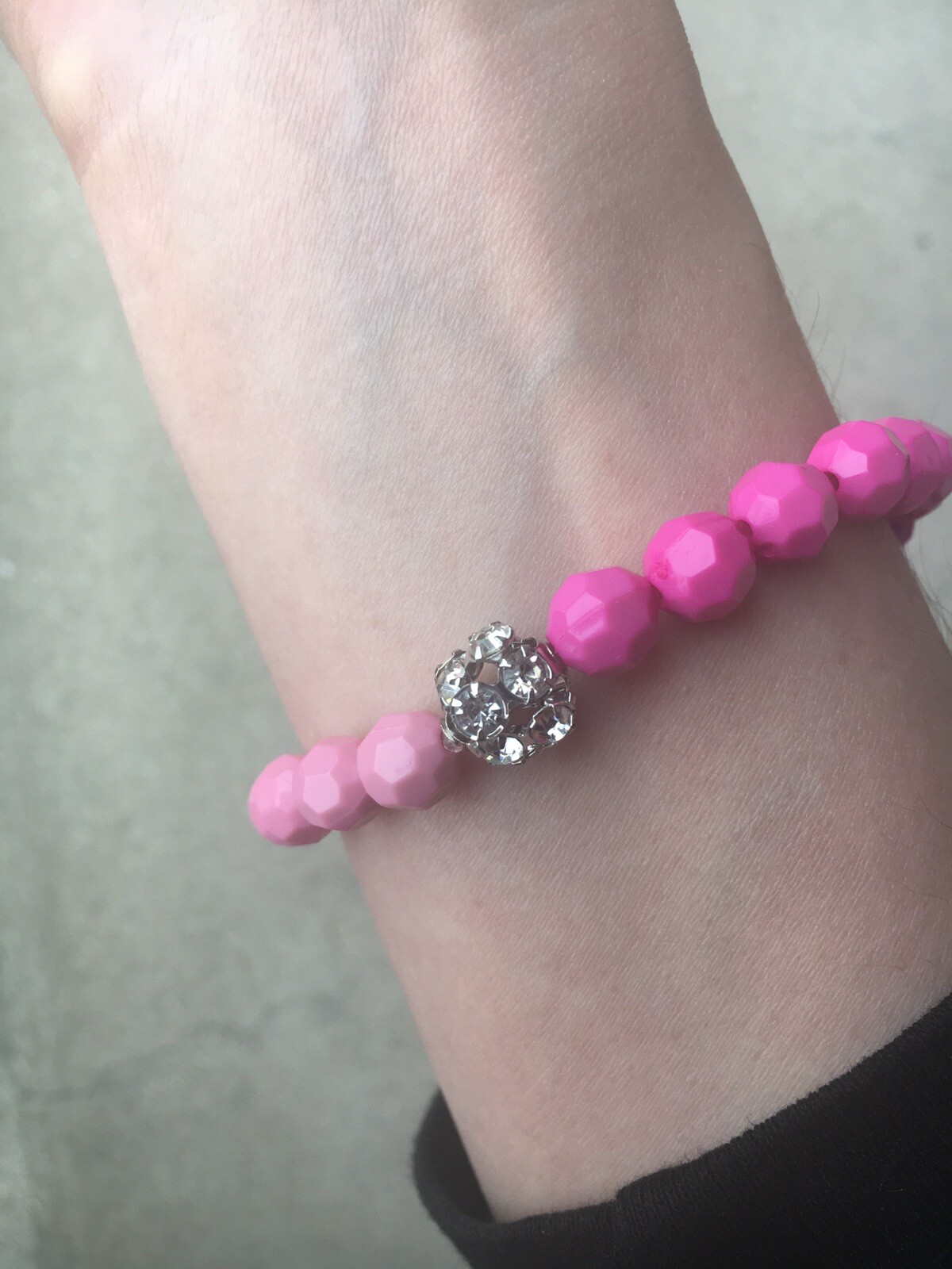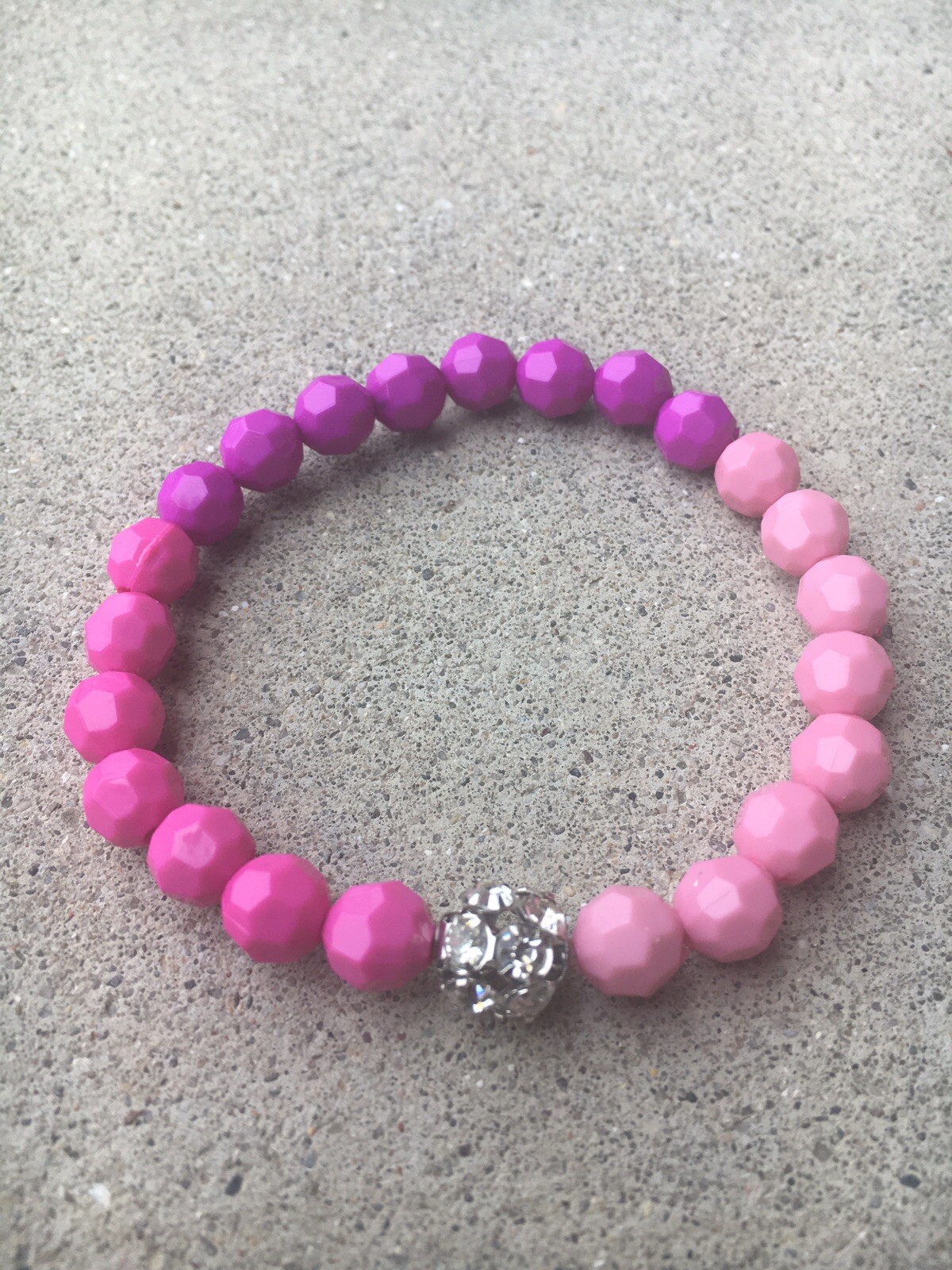 Womens Girls 7 Various Pink Beaded Stretch Bracelet, Rhinestone Crystal
