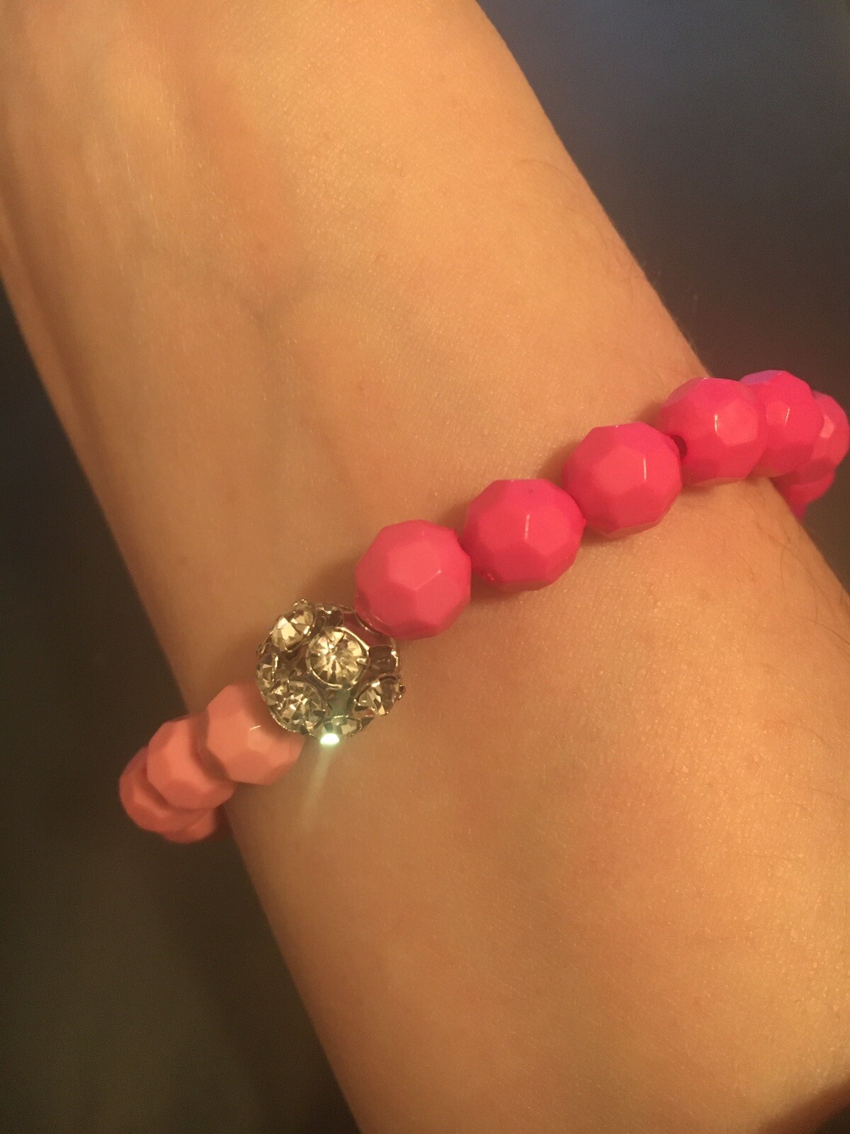 как выглядит Womens Girls 7 Various Pink Beaded Stretch Bracelet, Rhinestone Crystal фото
