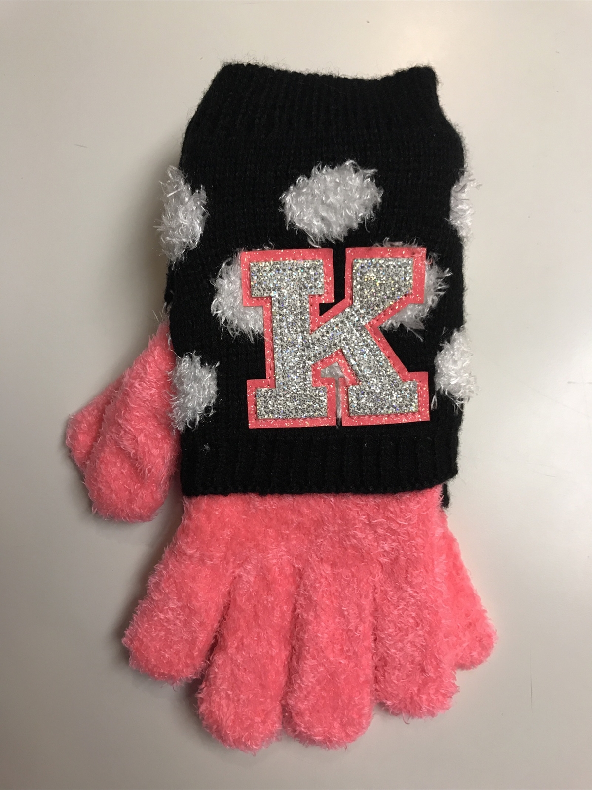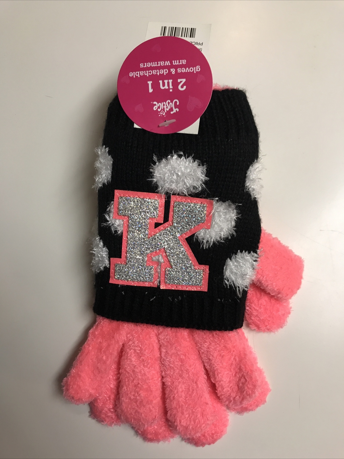 как выглядит JUSTICE GLOVES INITIAL K /Polkadot 2 In 1 SPARKLE/SOFT/WARM O/S SUPER CUTE фото