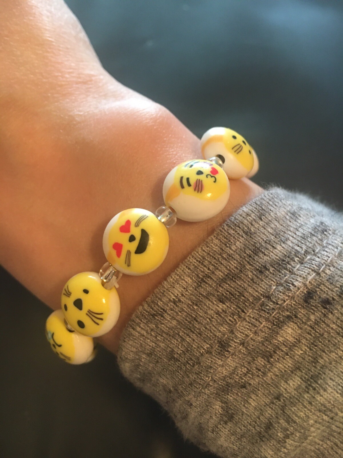 Kids Emoji Kitty Face Beaded Bracelet, Any Size, Expandable, Kids Jewelry Gift