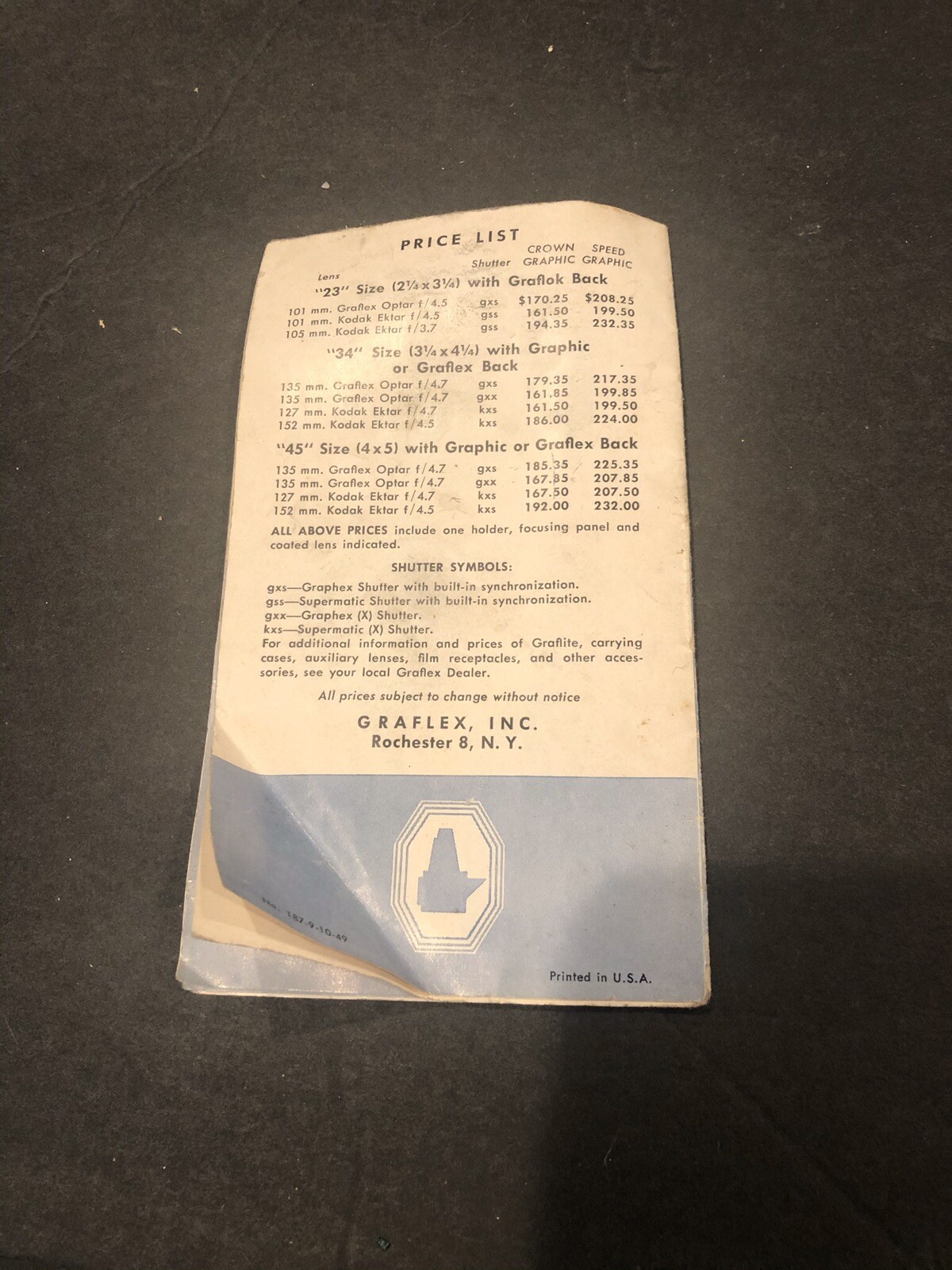 Early Graphics Camera Pacemaker Speed Crown Owners Manual Brochure