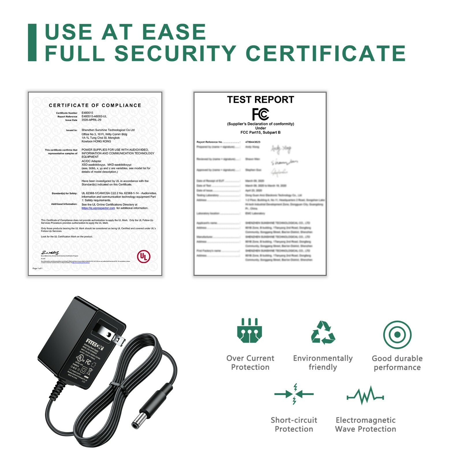 UL 5ft AC Adapter for Universal Audio Apollo Twin SOLO Thunderbolt Audio Power