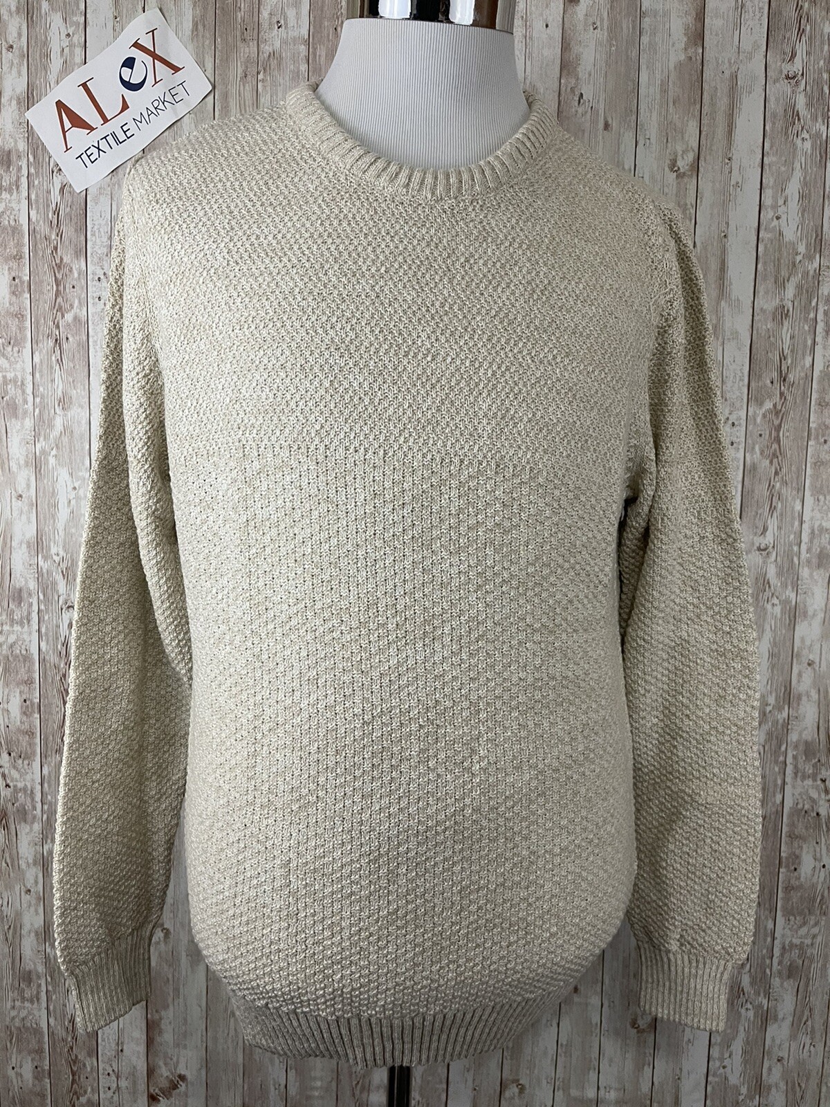 Alex Sweater Mens Small Beige Pullover Sweatshirt Relax Fit Crew Neck N136