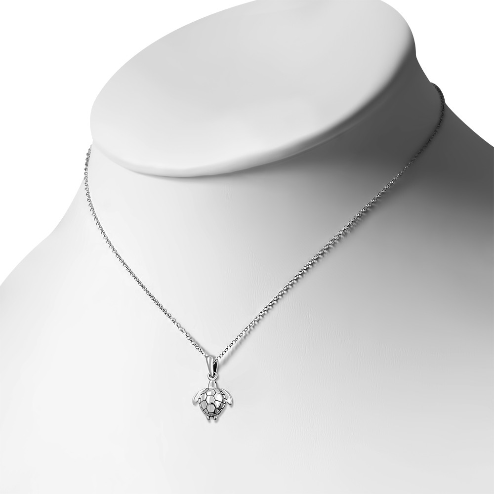 Womens Girls Sea Turtle Necklace Pendant 925 Sterling Silver