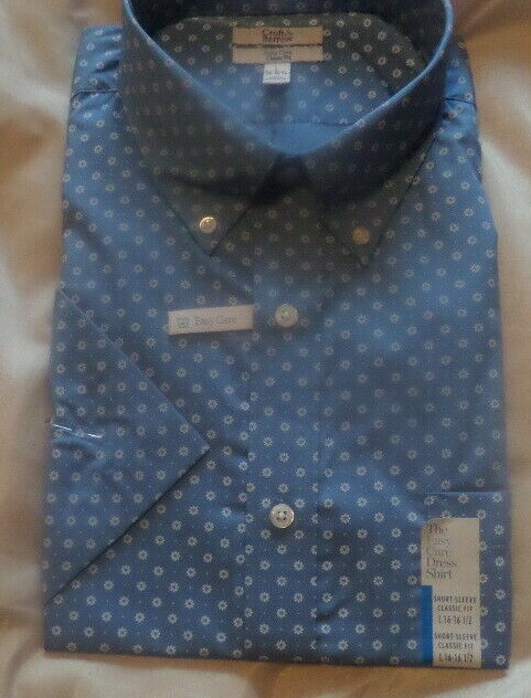 CROFT BARROW MEN'S SHORT SLEEVE EASY CARE CLASSIC FIT SHIRT Sm 14-14.5 NWT 32