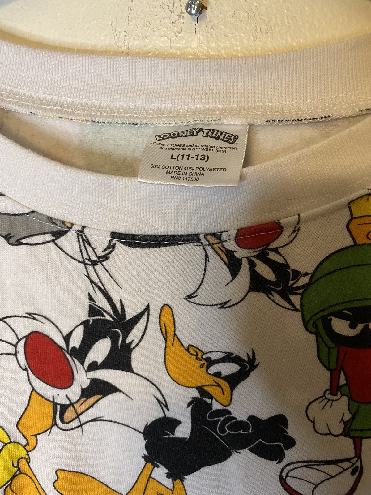Looney Tunes All Over Character Print Pullover Sweatshirt Woman's Size L 11-13