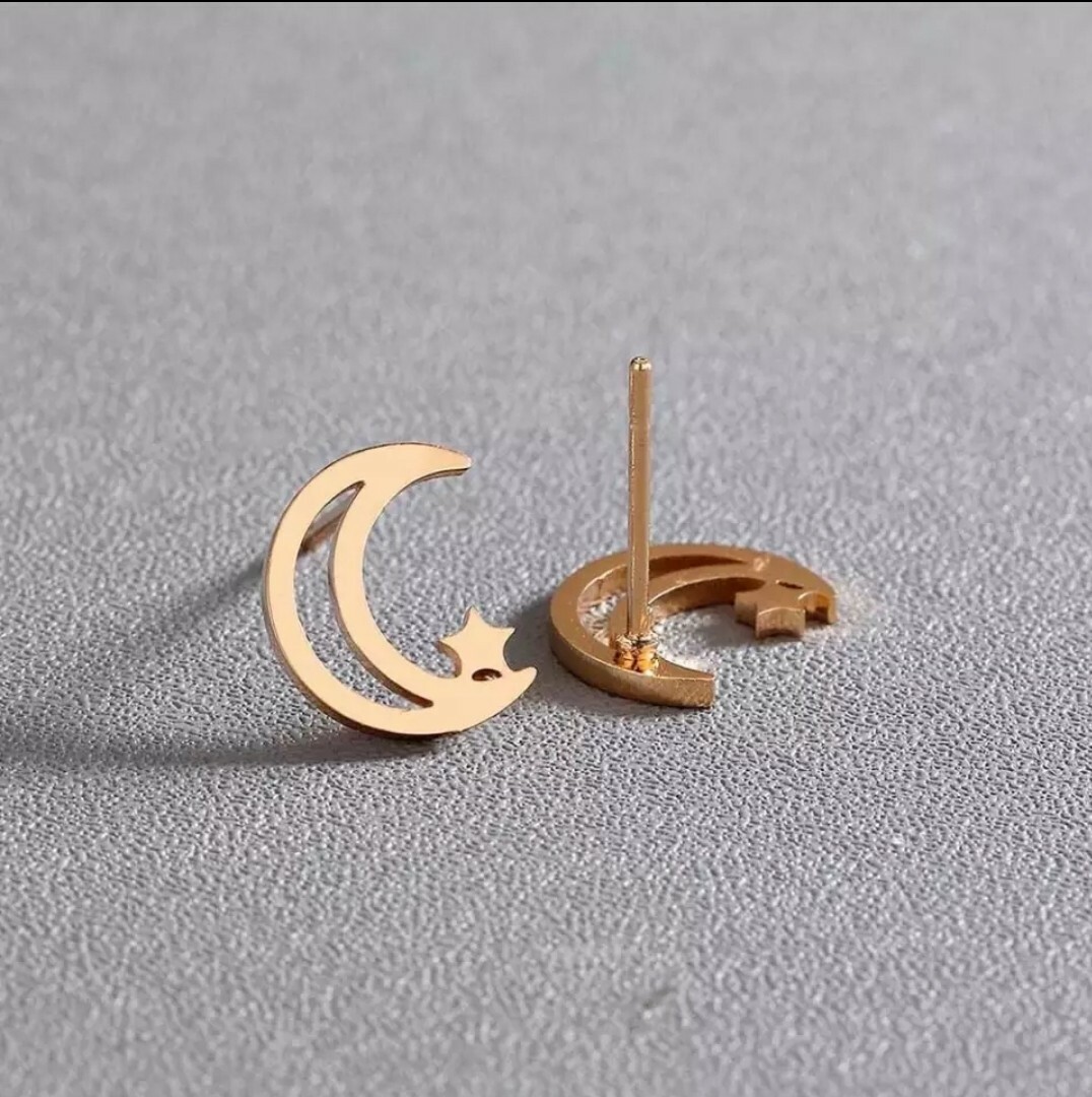 Women's Fashion Jewelry Moon Star Gold Color Stud Earrings 84-2