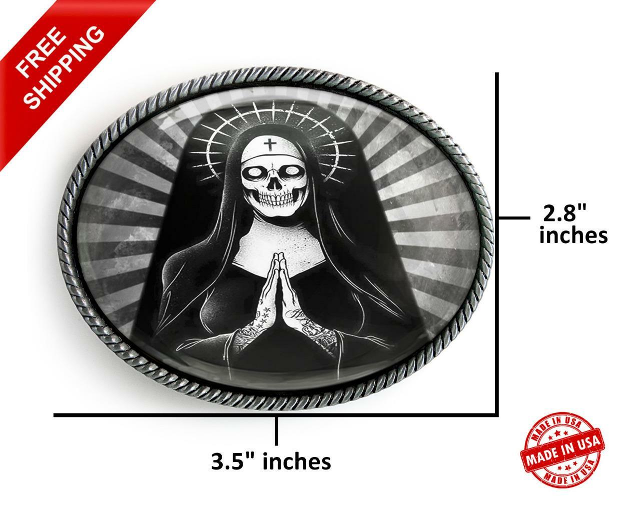 Santa Muerte Belt Buckle - Day of the Dead Skull Handmade Oval Buckle - 119-2