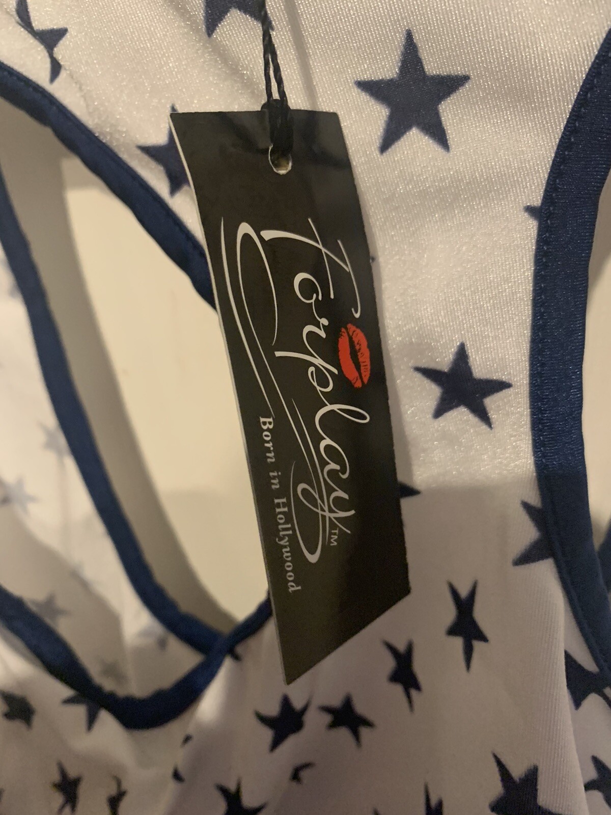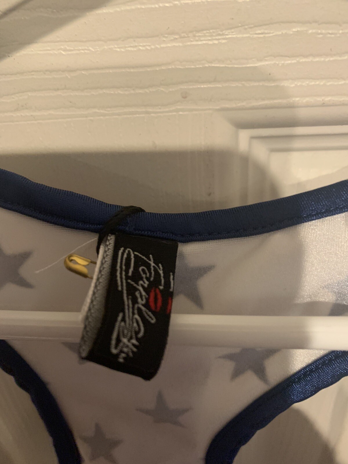 как выглядит New Forplay Total Knock Out Champ Costume Red White Blue Adult Size S/M фото