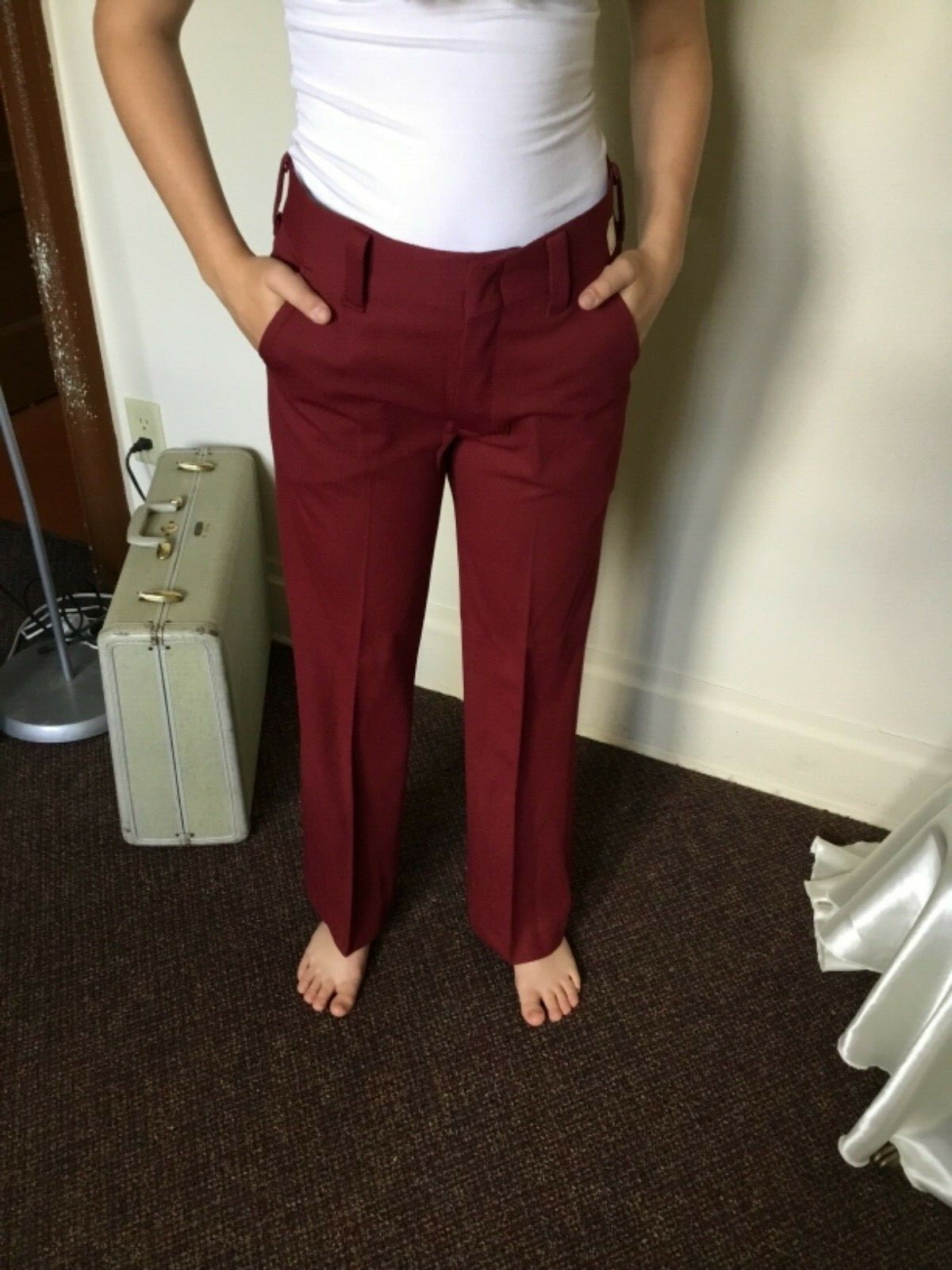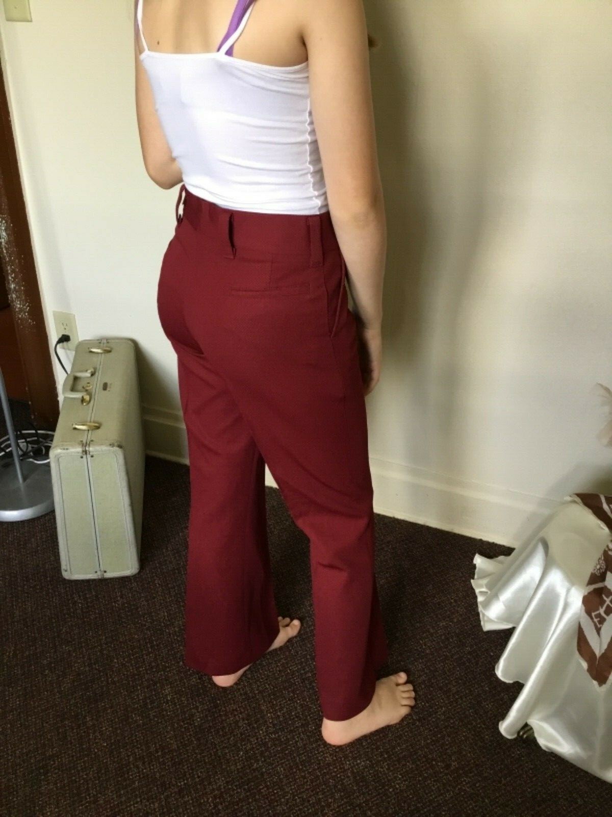 как выглядит 70s Vintage Maroon Hippie Wide Leg Bell Bottom Pants "NWT" фото