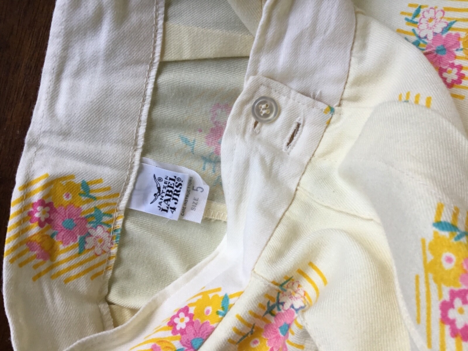 70's Vintage Yellow Hippie Pink Floral Hi-Waist Bell Bottom Pants