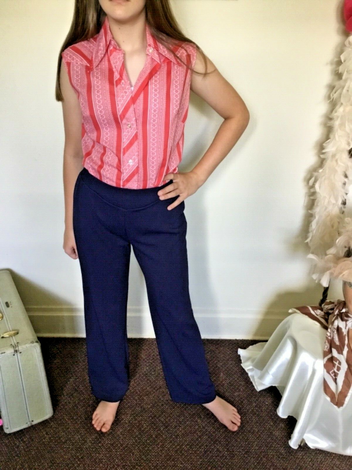 как выглядит 70s Vintage Navy Blue Mod/Gogo Hi-Waist Bell Bottom Pants фото