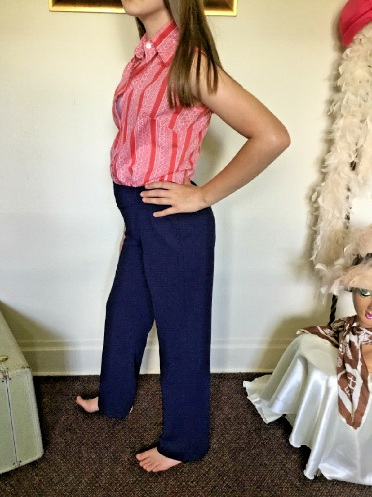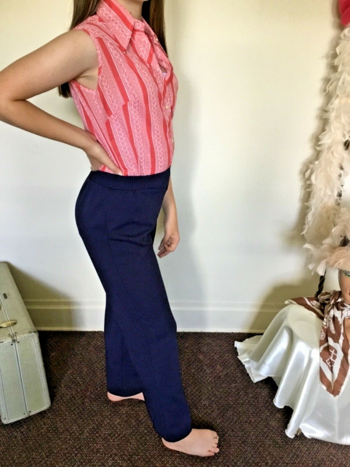70's Vintage Navy Blue Mod/Gogo Hi-Waist Bell Bottom Pants