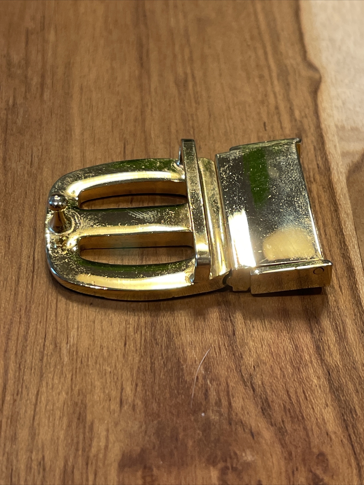 как выглядит Vintage Designer E gold toned enamel dress belt buckle фото