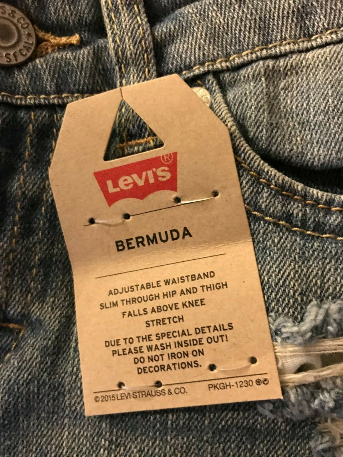 как выглядит New Girls Levi Jeans Raw Edge Bermuda Adjustable Waistband Shorts 7 Regular фото