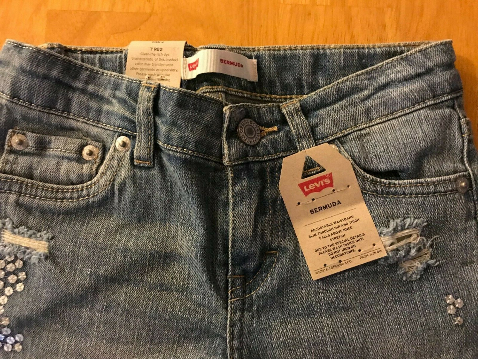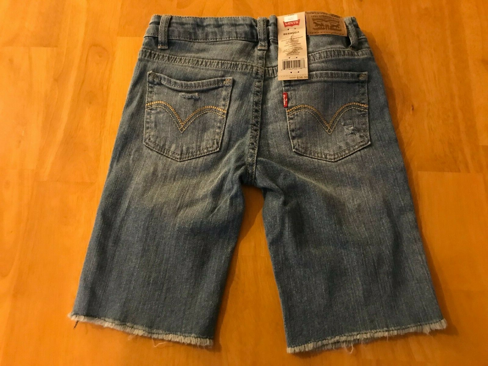 New Girl's Levi Jeans Raw Edge Bermuda Adjustable Waistband Shorts 7 Regular