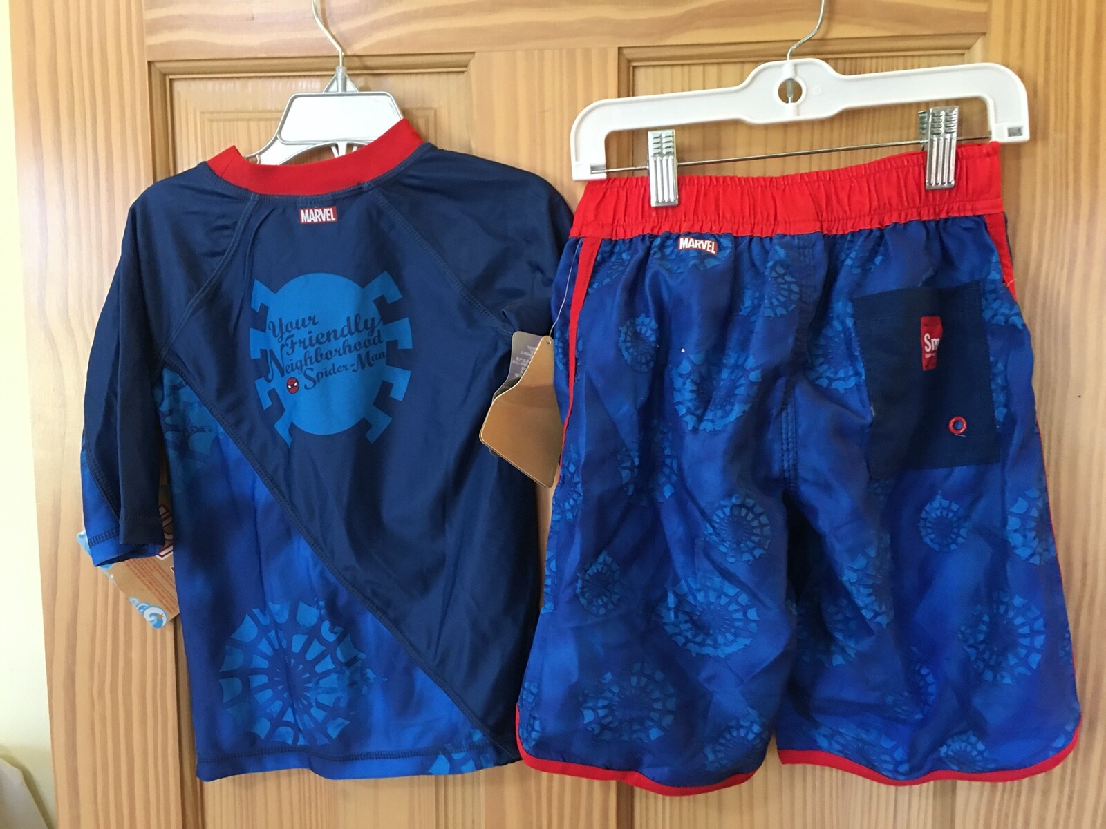 NWT Disney Store Spiderman Boy Rash Guard Shirt Top Trunk Set UPF 50 5/6
